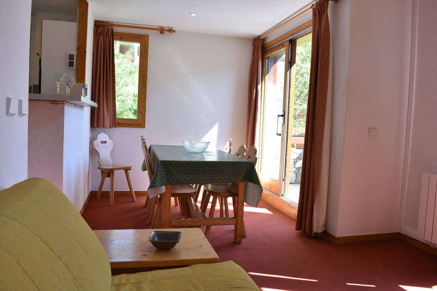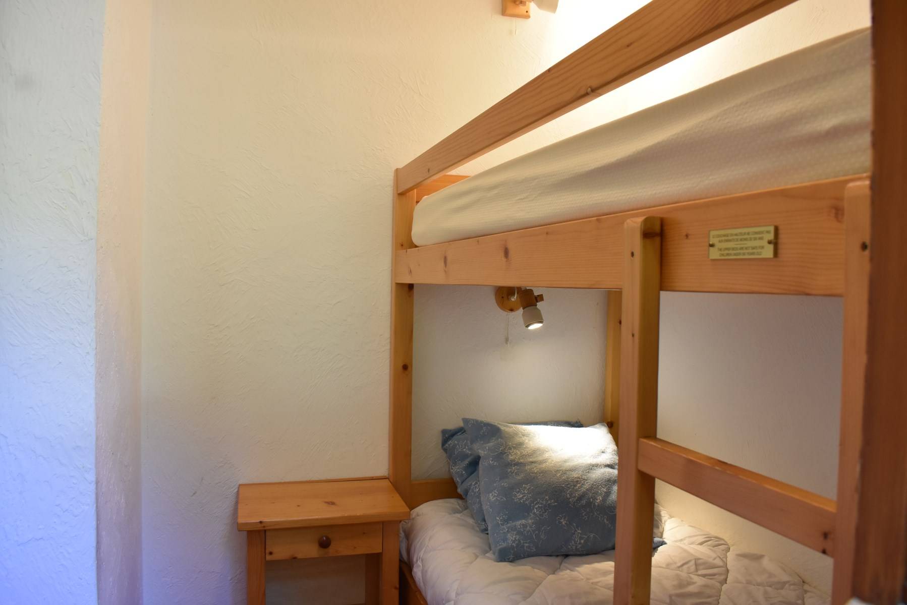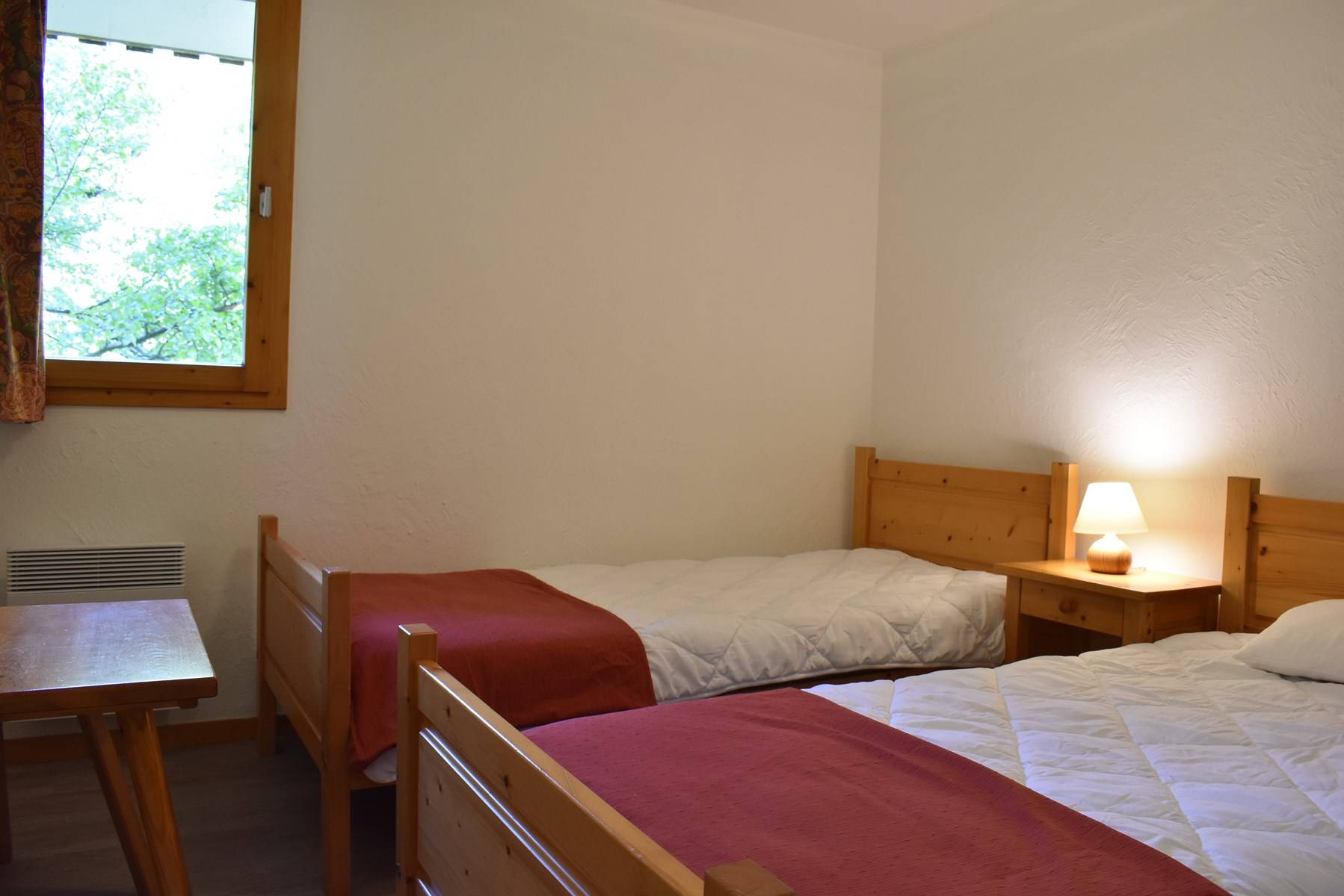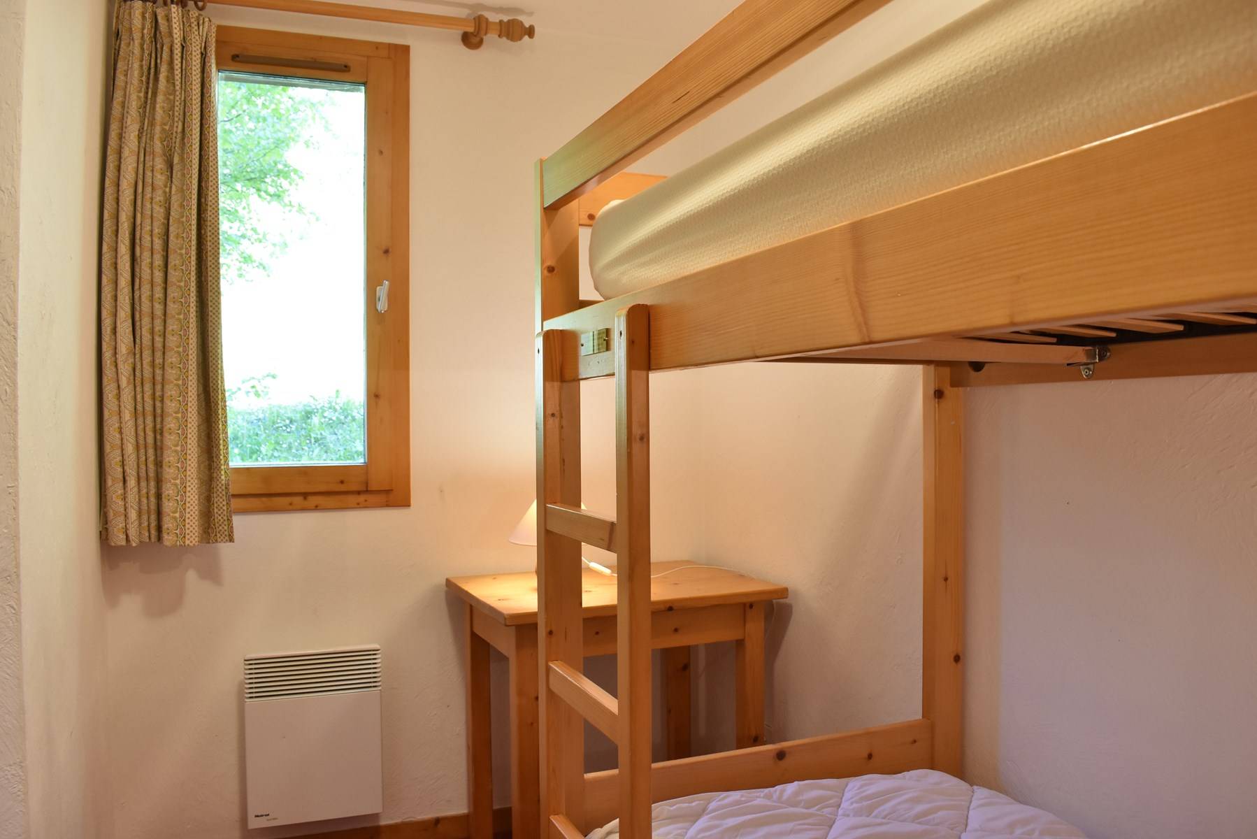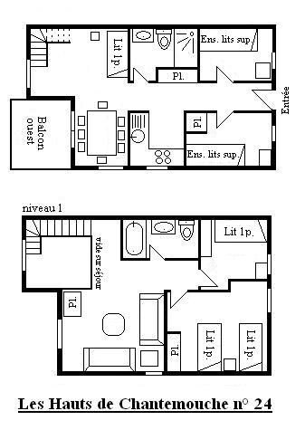 Appartement 5 pièces mezzanine - 61 m² - jusqu'à 8 personnes La résidence les Hauts de Chantemouche est située à environ 130m de l'arrêt de bus, à 150m des pistes du télésiège de Morel, à 300m des commerces et restaurants. Cet appartement de vacances en duplex, situé au deuxième étage, avec ascenseur, se compose d'une cuisine équipée ouverte sur le séjour avec un coin repas donnant sur un balcon Ouest, une chambre 1 ensemble de 2 lits superposés, une autre chambre avec 1 ensemble de 2 lits superposés, 1 salle d'eau avec wc. A l'étage, une mezzanine avec 1 lit 1 personne, une chambre avec 2 lits 1 personne, 1 chambre avec 1 lit 1 personne et 1 salle de bain avec wc.