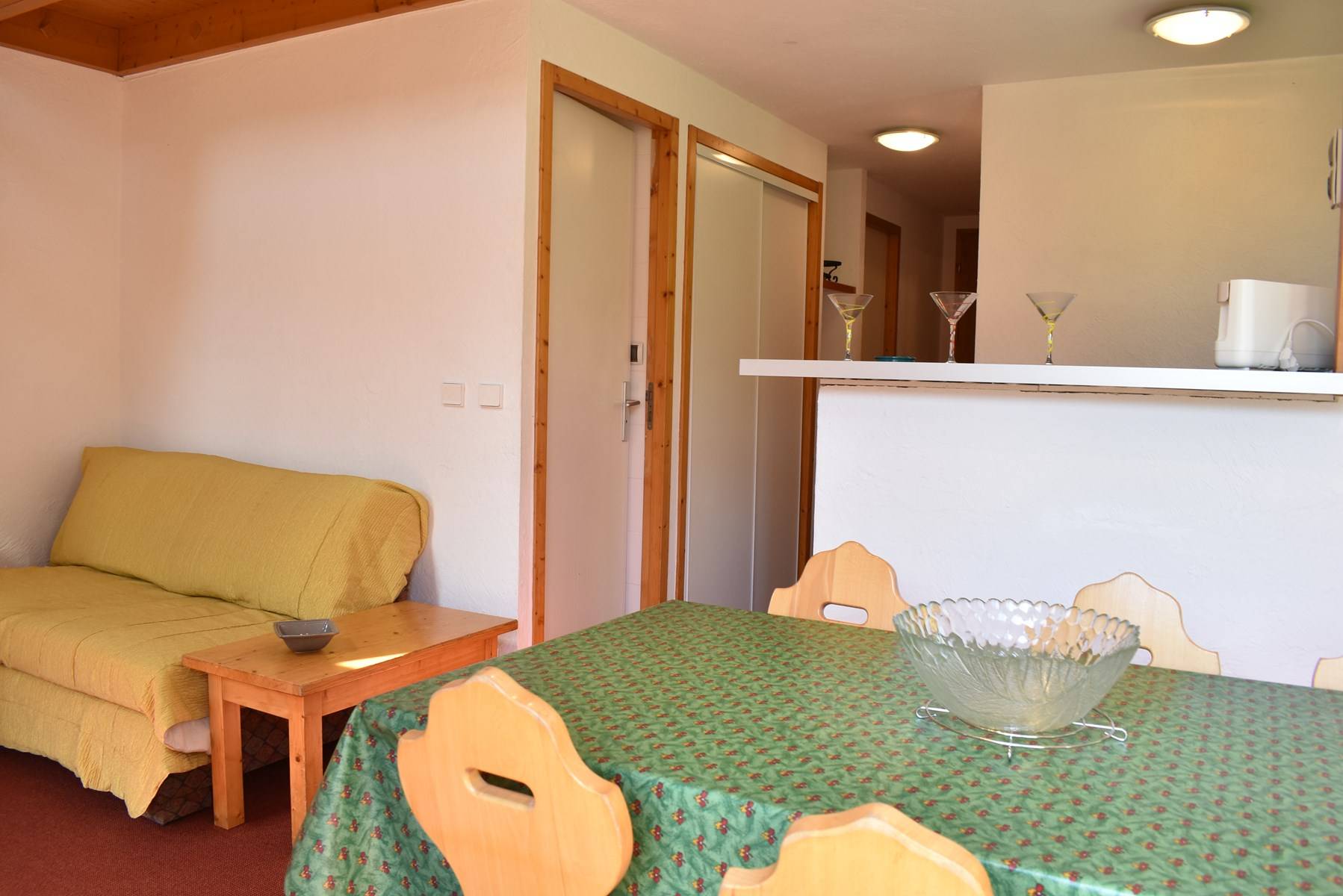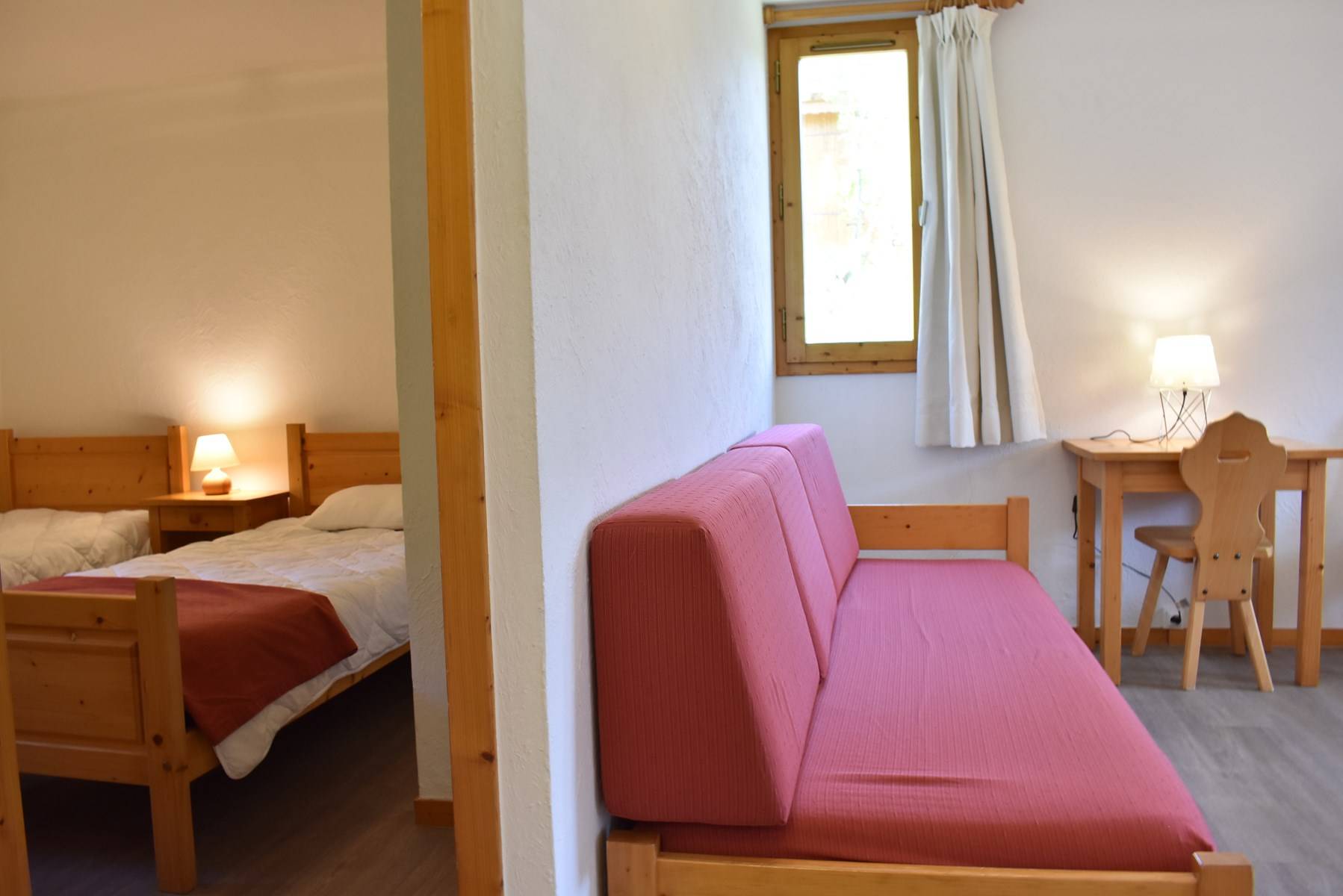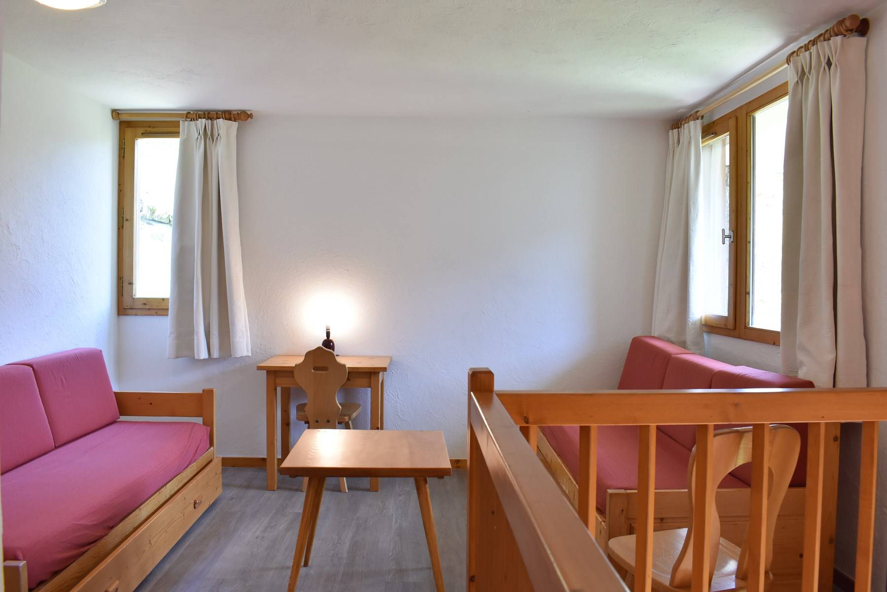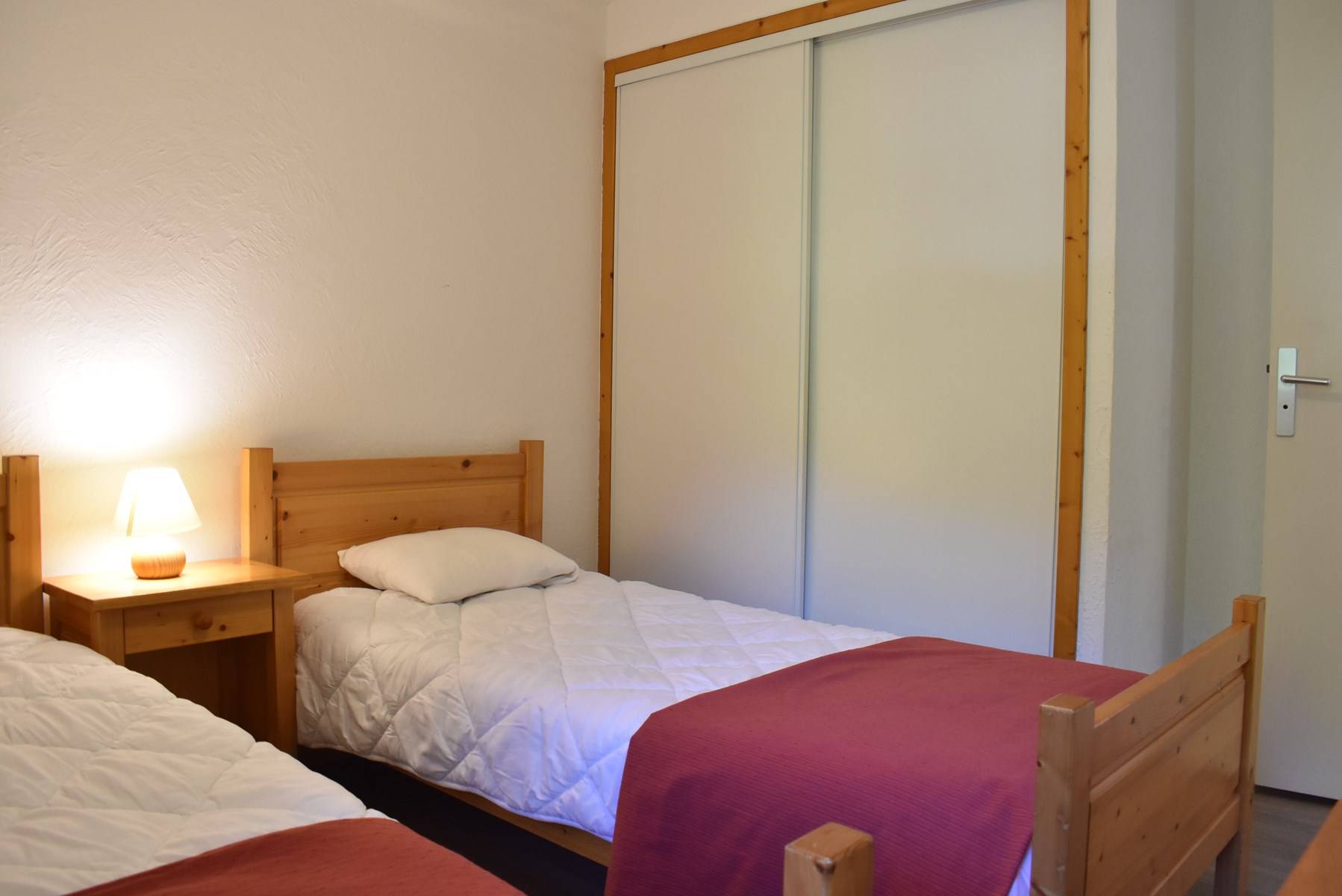 Appartement 5 pièces mezzanine - 61 m² - jusqu'à 8 personnes La résidence les Hauts de Chantemouche est située à environ 130m de l'arrêt de bus, à 150m des pistes du télésiège de Morel, à 300m des commerces et restaurants. Cet appartement de vacances en duplex, situé au deuxième étage, avec ascenseur, se compose d'une cuisine équipée ouverte sur le séjour avec un coin repas donnant sur un balcon Ouest, une chambre 1 ensemble de 2 lits superposés, une autre chambre avec 1 ensemble de 2 lits superposés, 1 salle d'eau avec wc. A l'étage, une mezzanine avec 1 lit 1 personne, une chambre avec 2 lits 1 personne, 1 chambre avec 1 lit 1 personne et 1 salle de bain avec wc.