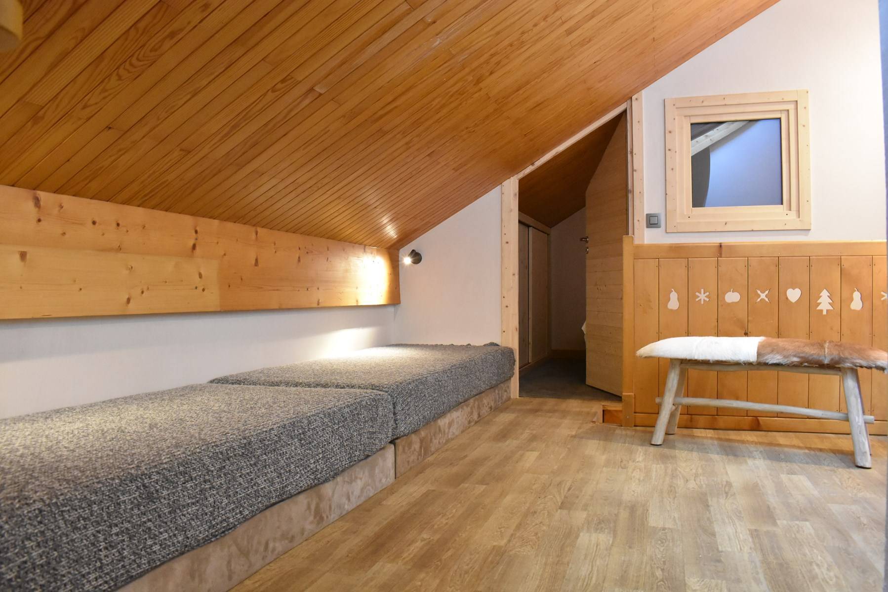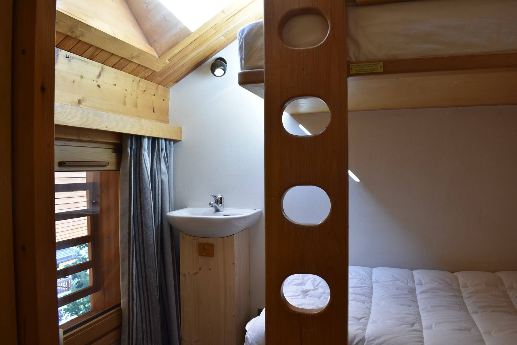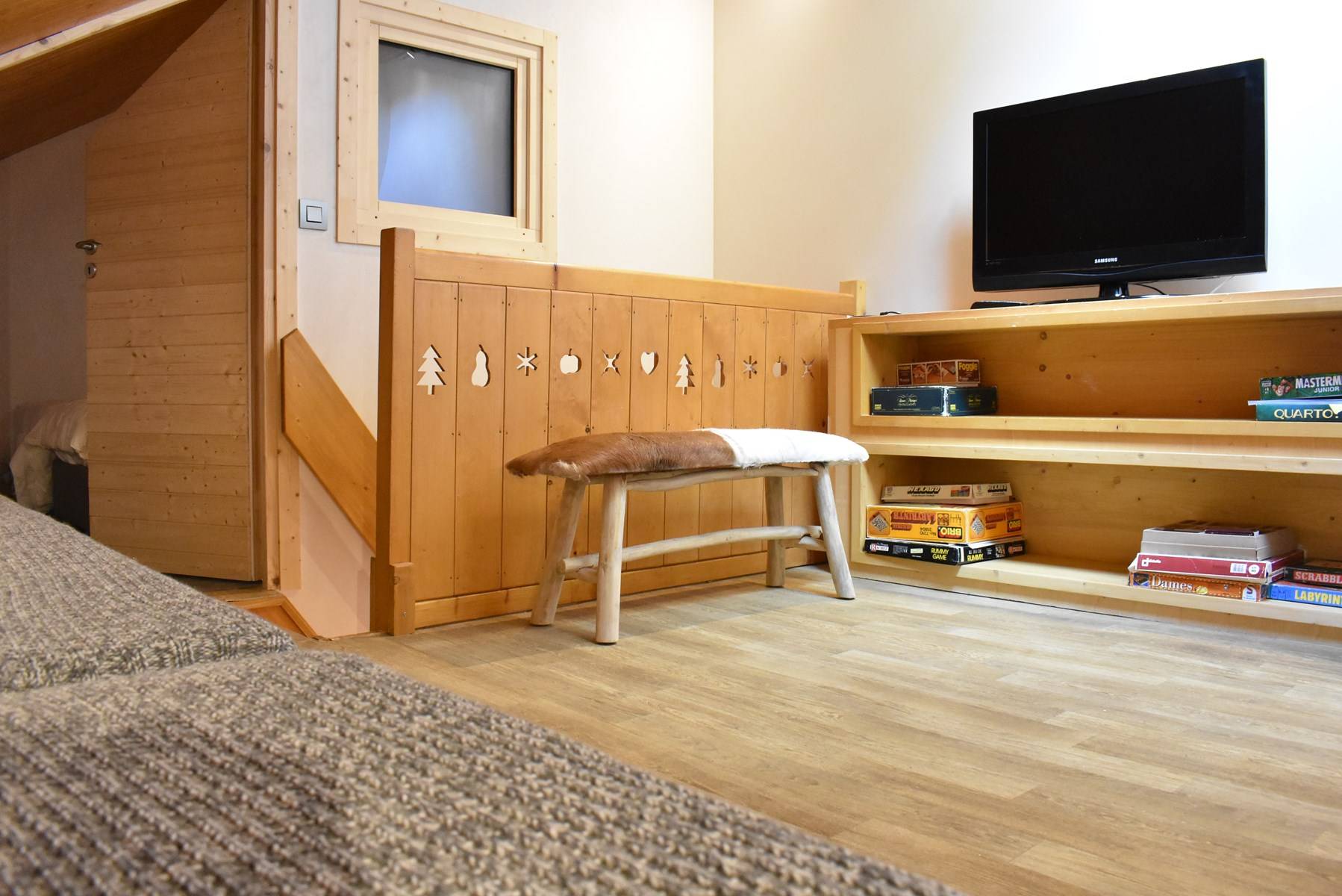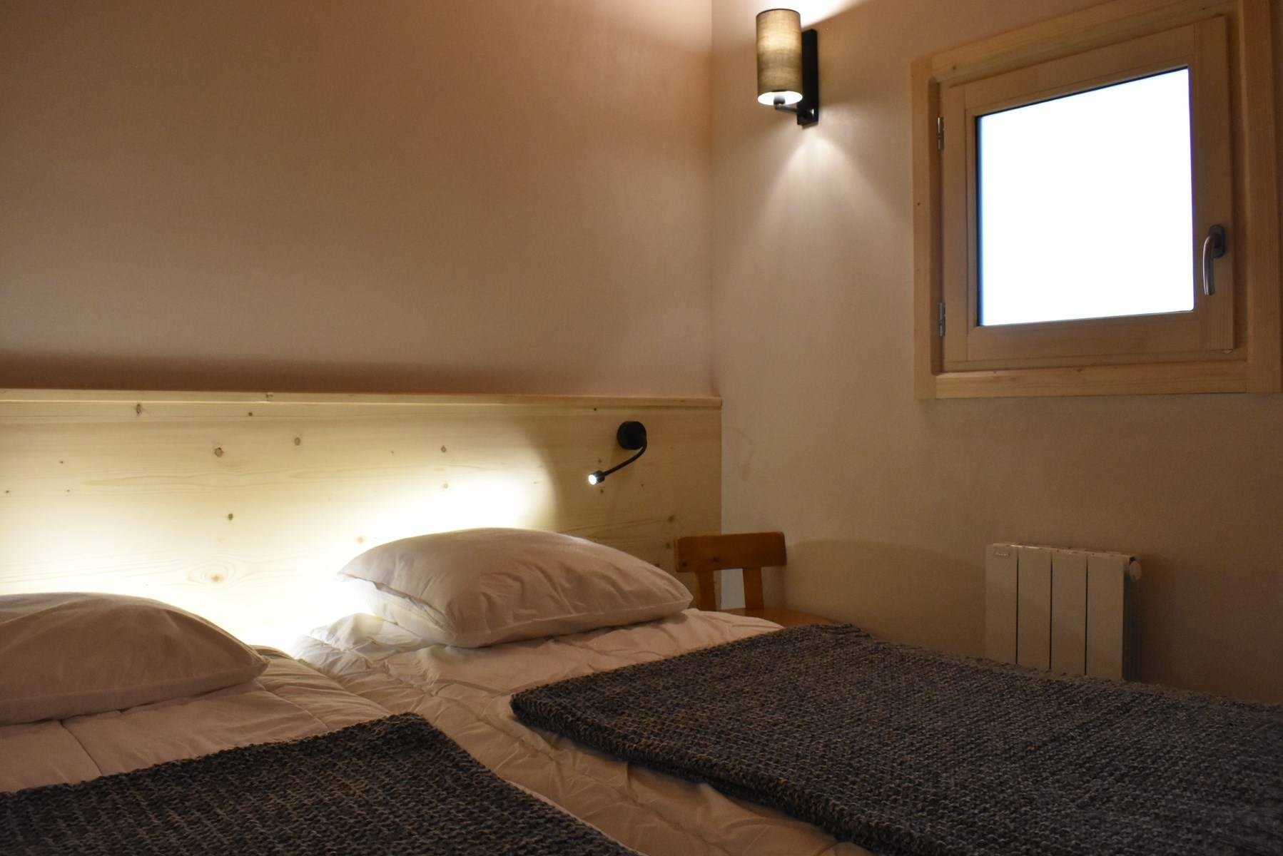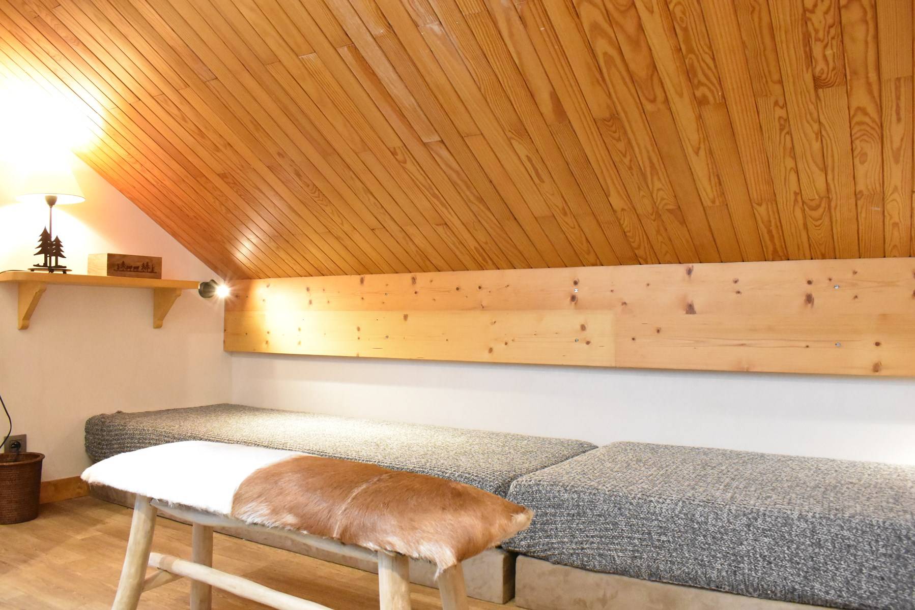 L’étage est composé d'un petit salon mezzanine avec télévision, d’une chambre avec 2 lits simples (90x200) qui sont rapprochables, d'une chambre avec deux lits simples (80x200), d'1 salle d'eau avec wc. Vous disposez d'un casier à ski à l'entrée de la résidence.