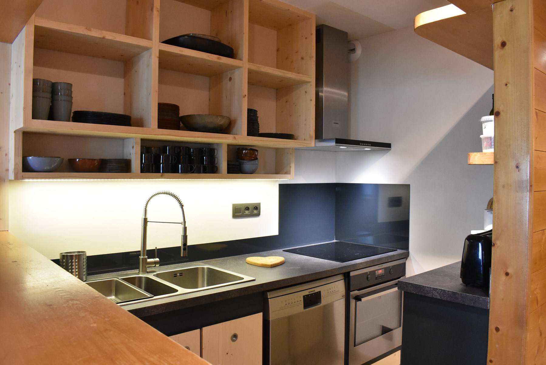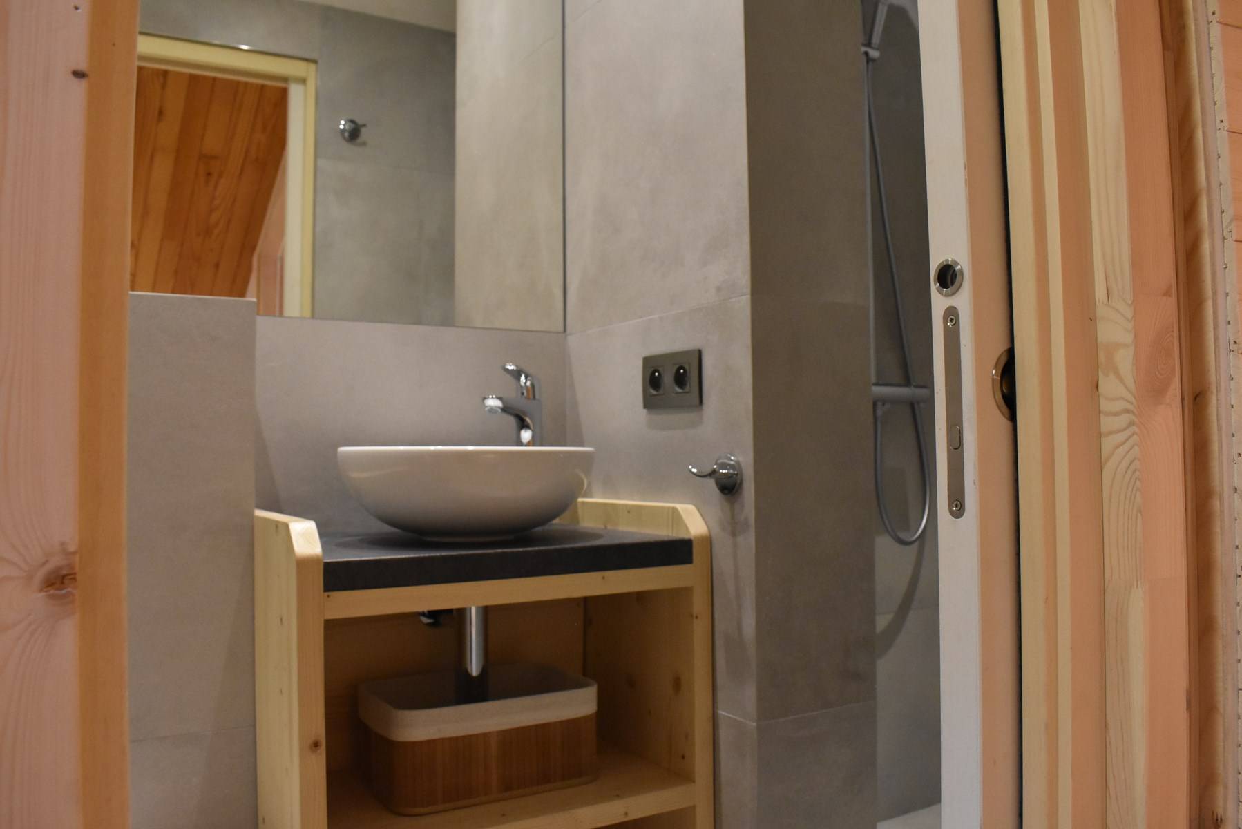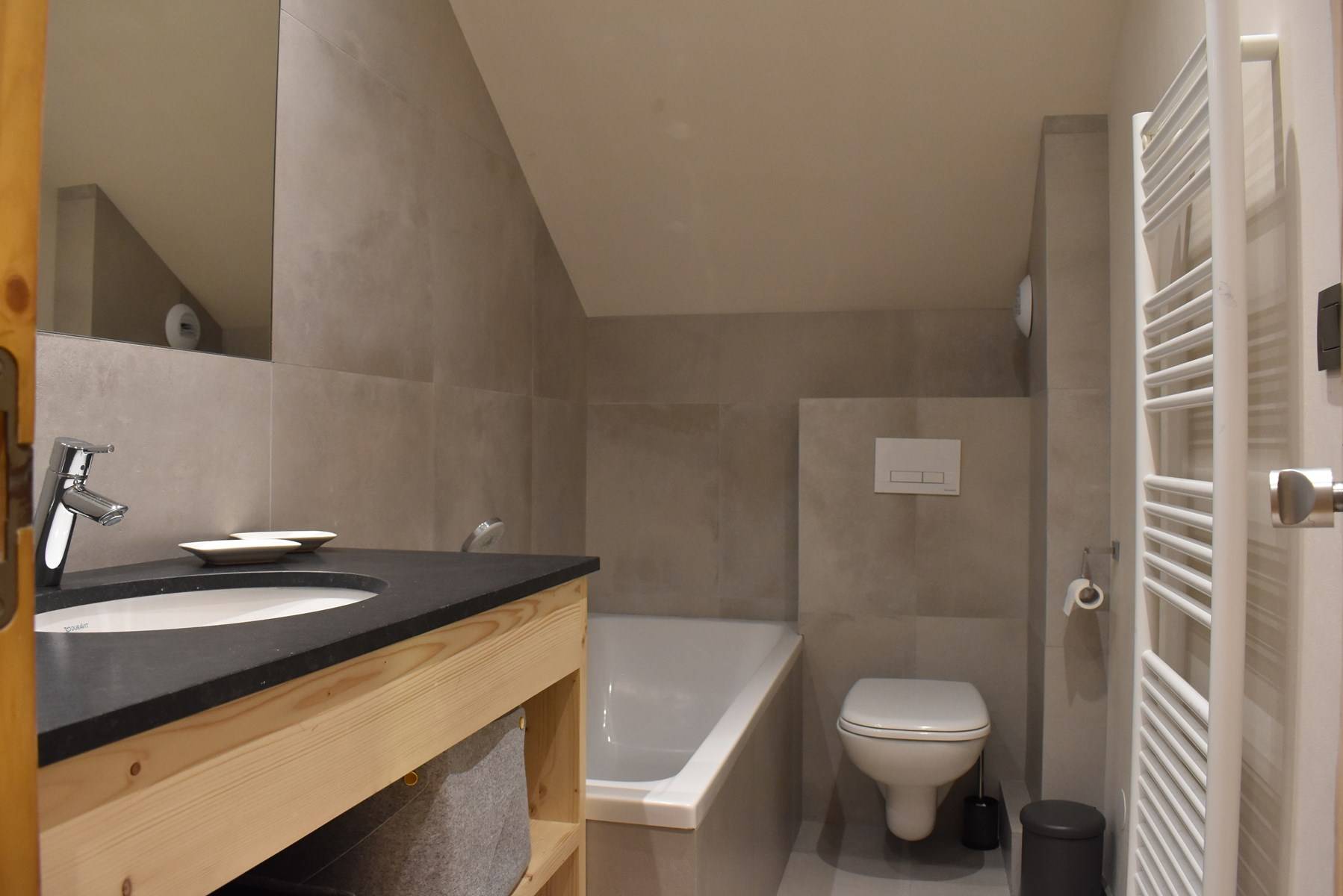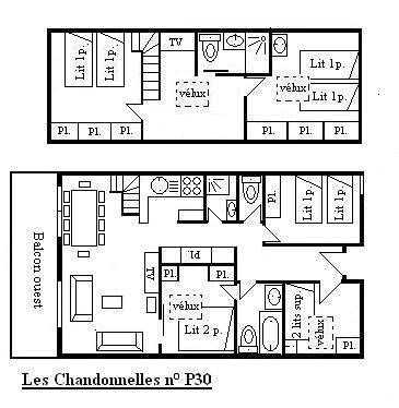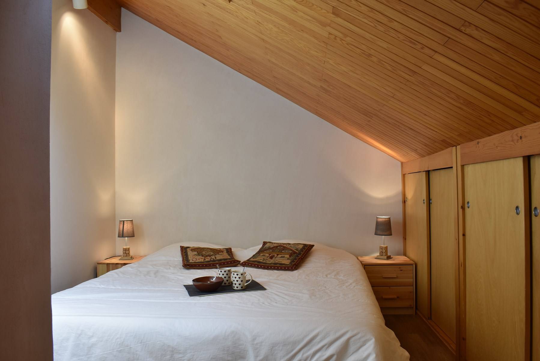 L’étage est composé d'un petit salon mezzanine avec télévision, d’une chambre avec 2 lits simples (90x200) qui sont rapprochables, d'une chambre avec deux lits simples (80x200), d'1 salle d'eau avec wc. Vous disposez d'un casier à ski à l'entrée de la résidence.
