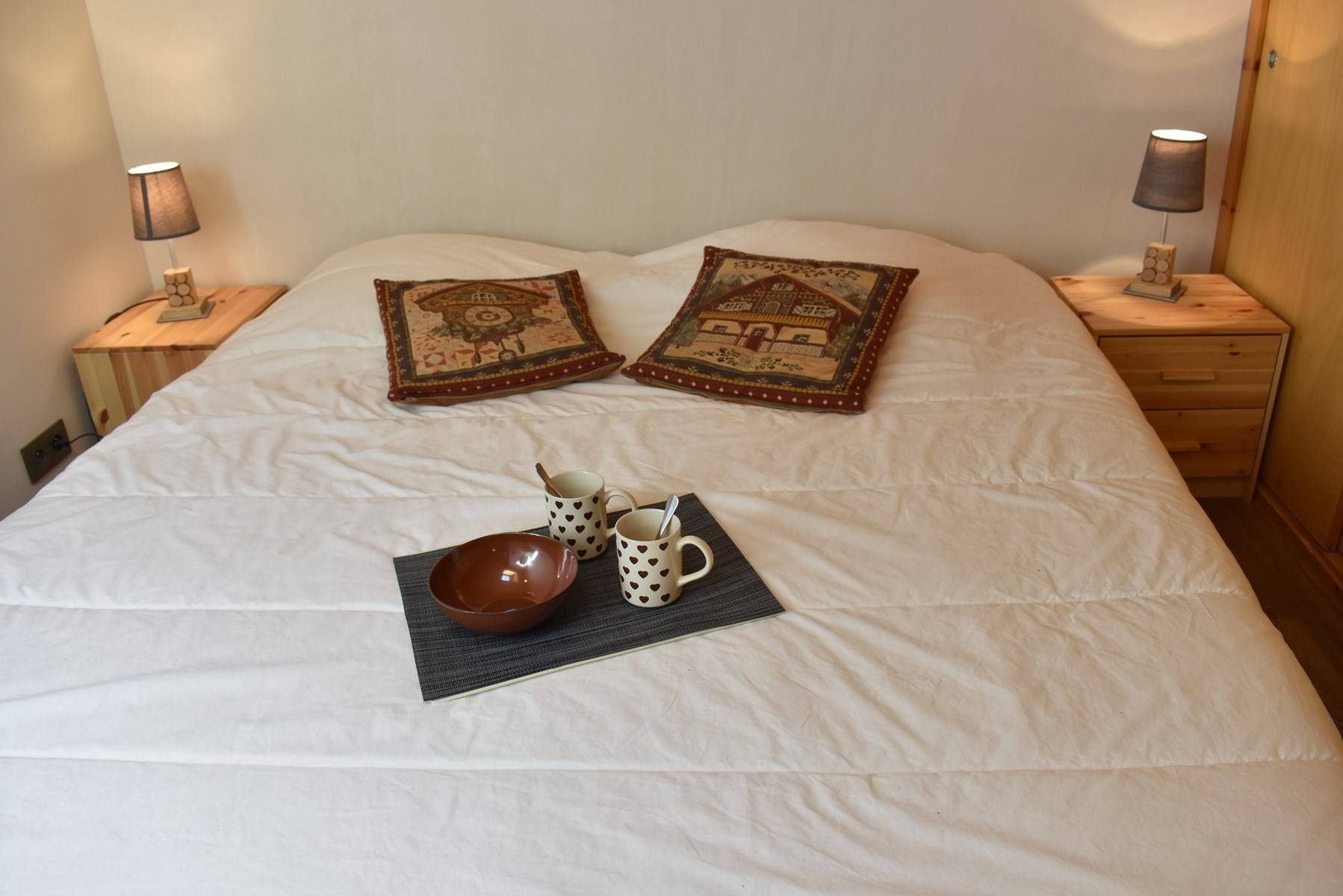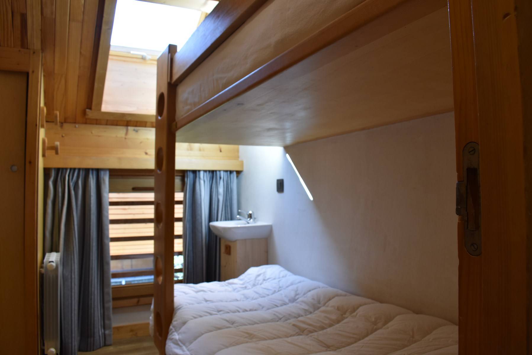 Cette location de vacances au ski, située au 5ème étage par ascenseur comprend un séjour/salle à manger avec télévision, un coin cuisine équipée, une chambre avec 2 lits 1 personne (80x200), 1 chambre avec un lit double (160x200 ), 1 salle de bain avec WC, 1 chambre avec 1 ensemble de lits superposés (80x200), 1 salle de douche, un WC indépendant et un balcon exposé ouest.