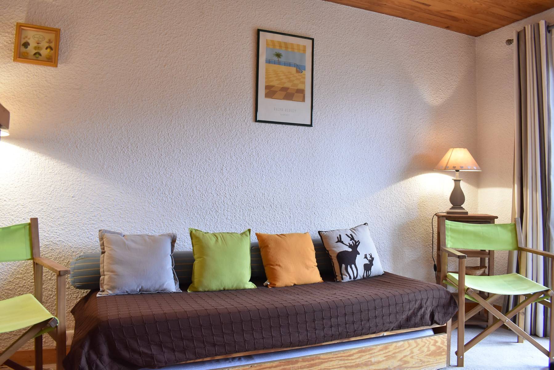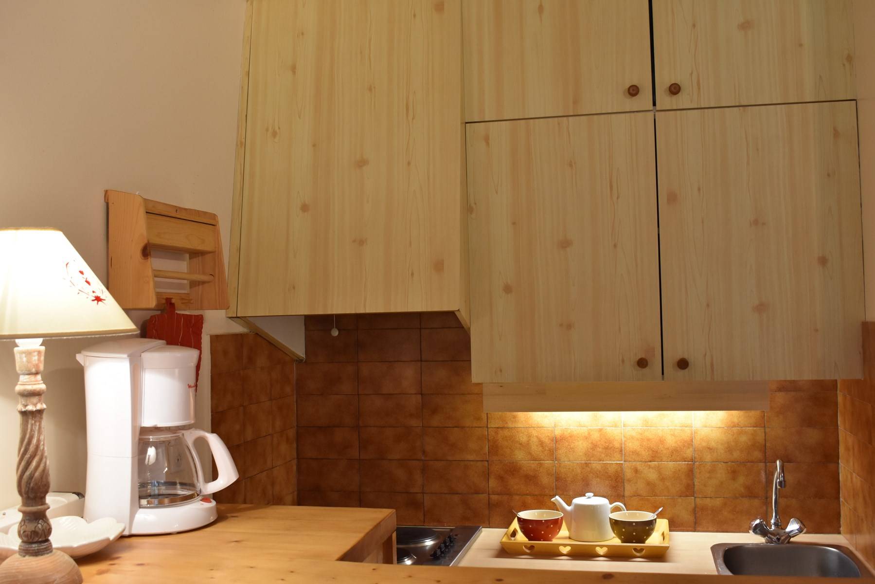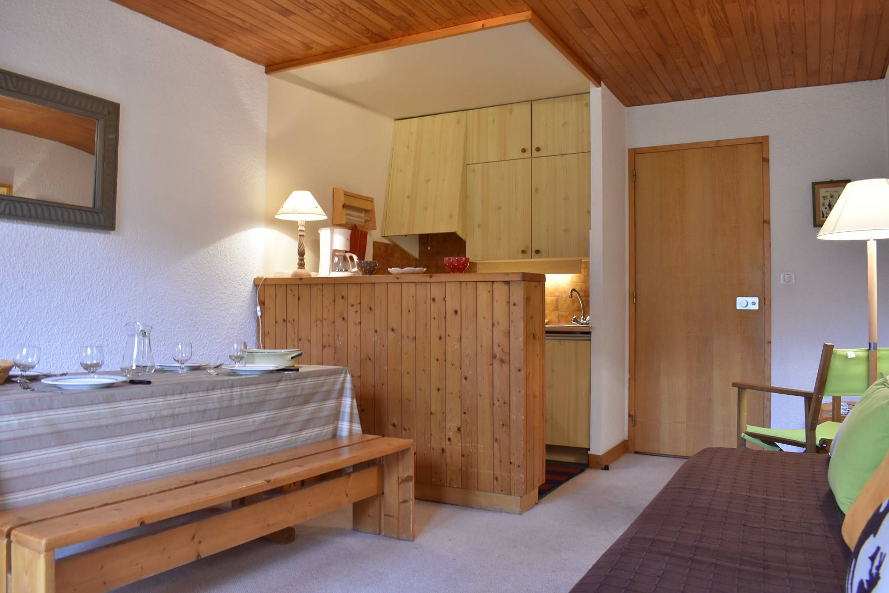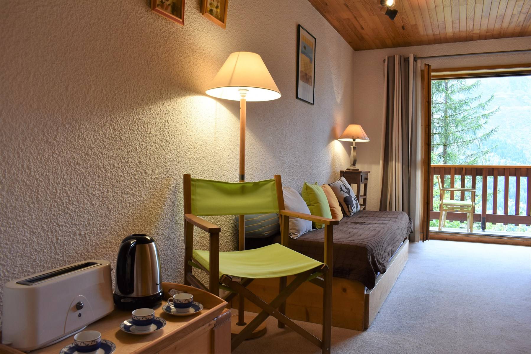 Cet appartement, accessible par ascenseur, se trouve au premier étage de la résidence. Il comprend une cuisine équipée ouverte sur le séjour avec deux lits gigognes relevables, une télévision avec lecteur DVD intégré, une chambre avec 2 lits simples, une salle de bain et un wc indépendant. Un casier à skis est disponible au niveau de l'entrée de la résidence.