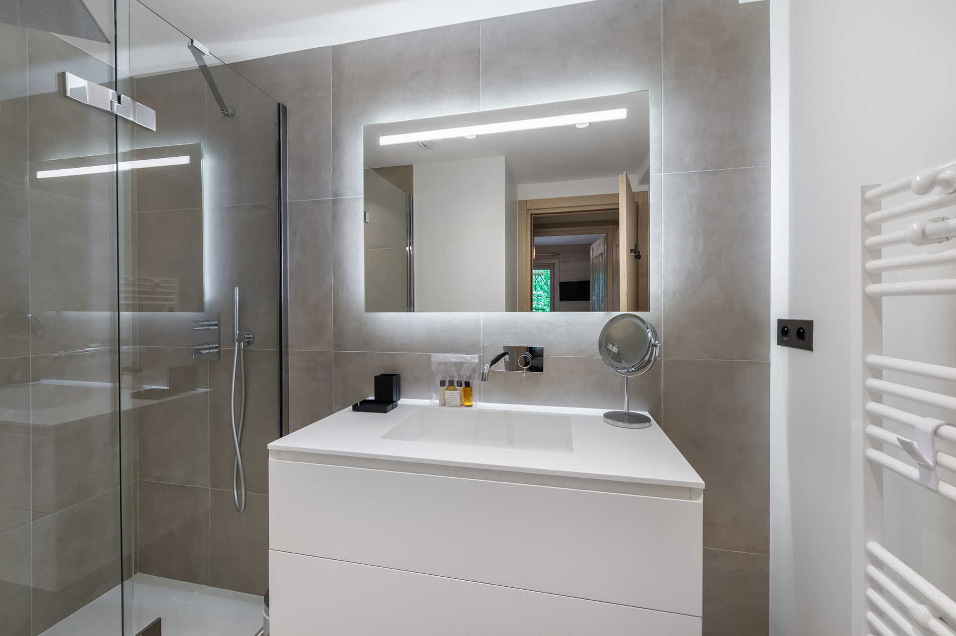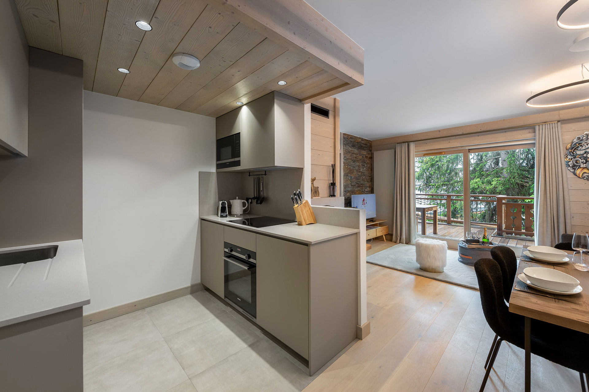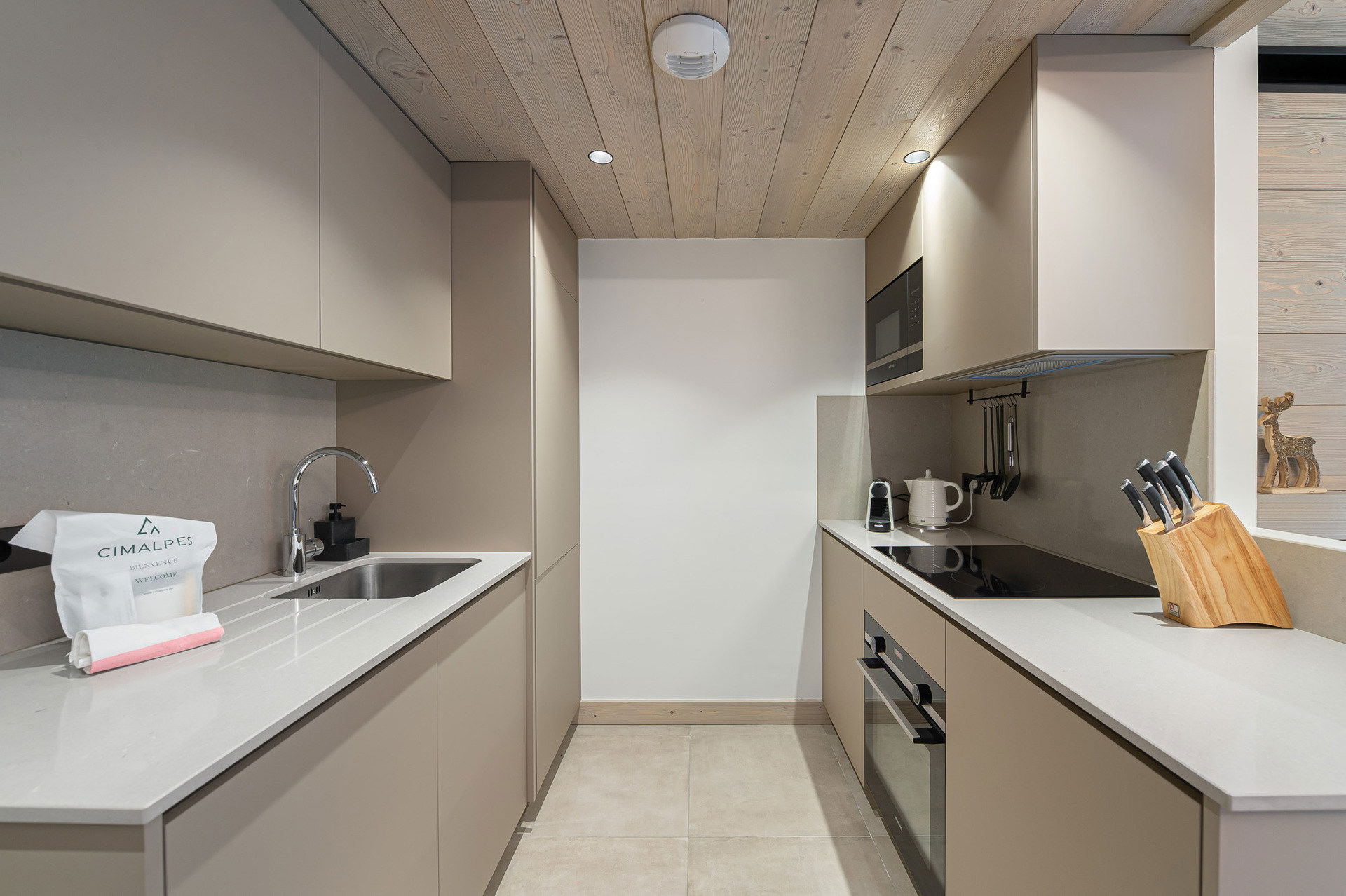 - Cuisine ouverte, équipée : plaque induction, réfrigérateur/congélateur, four traditionnel, four micro-onde, lave-vaisselle, hotte, grille-pain, Nespresso, bouilloire électrique