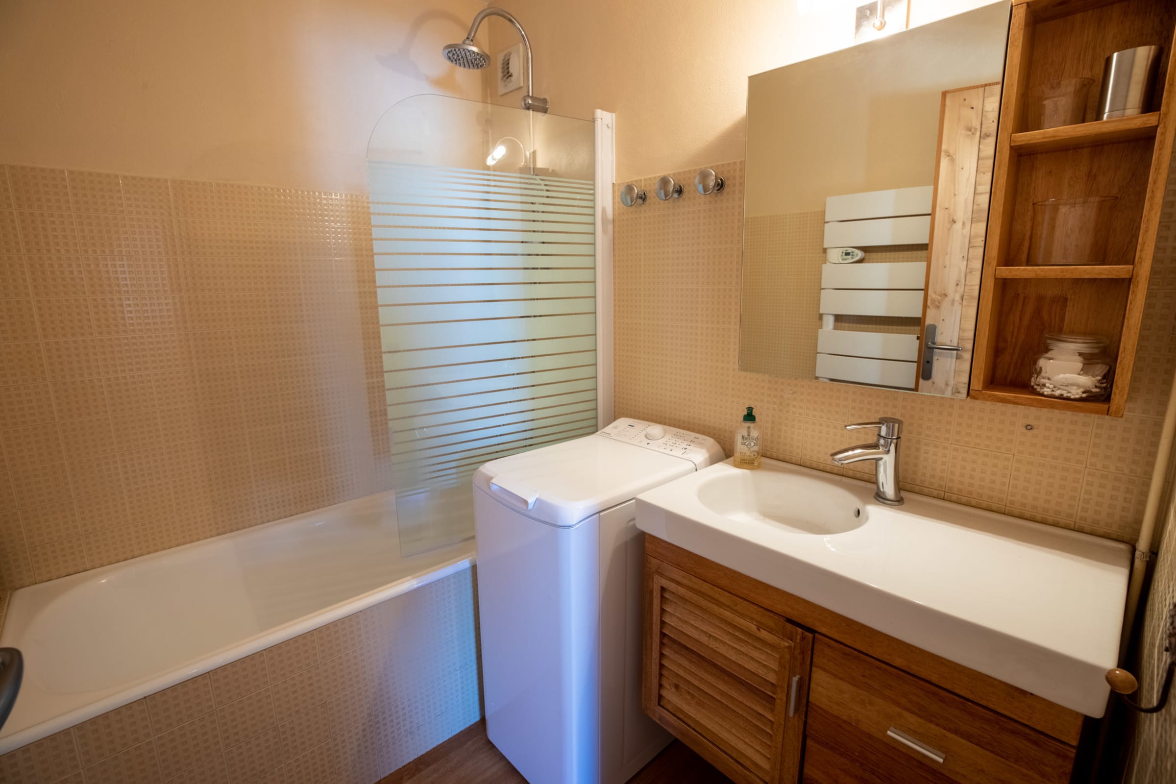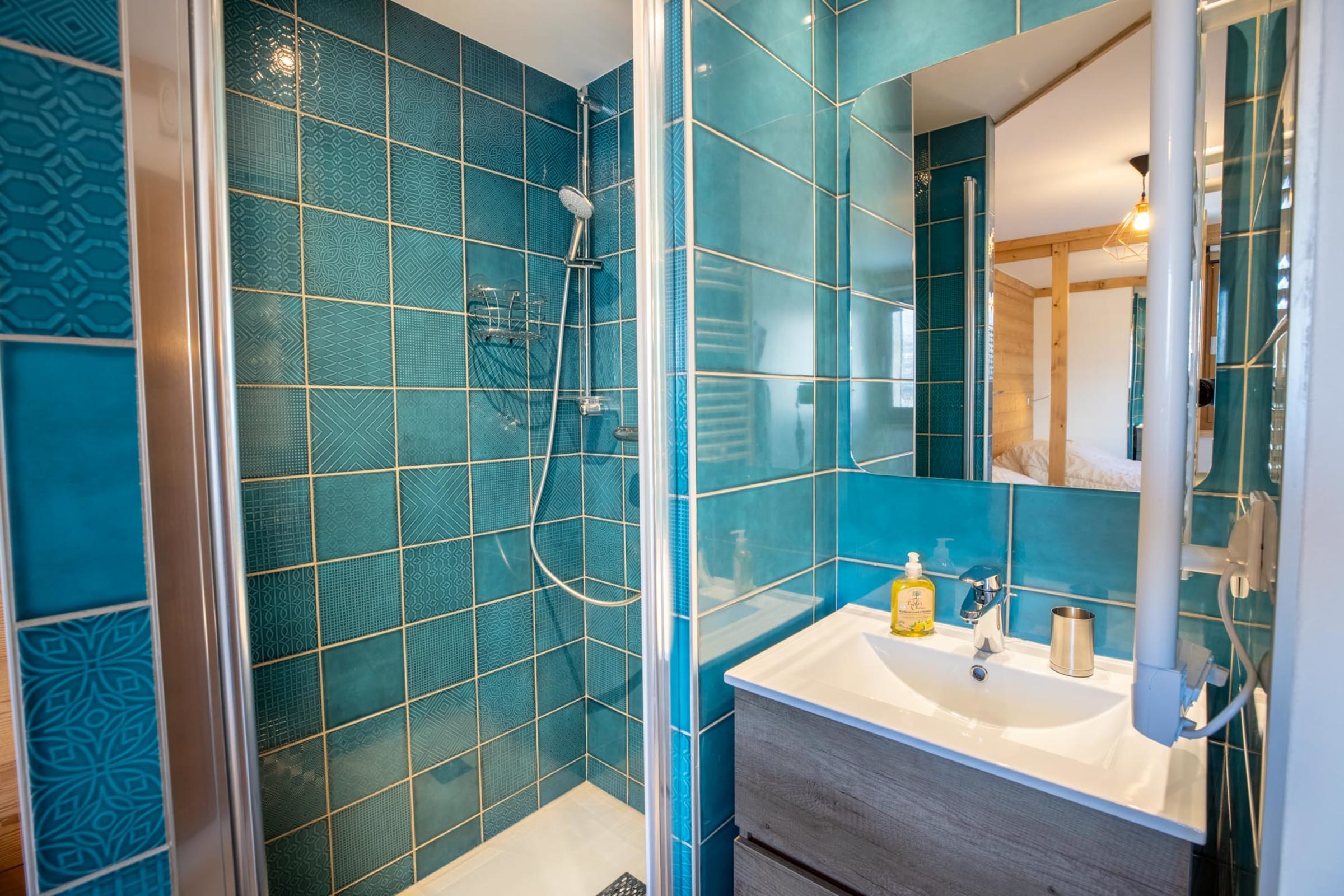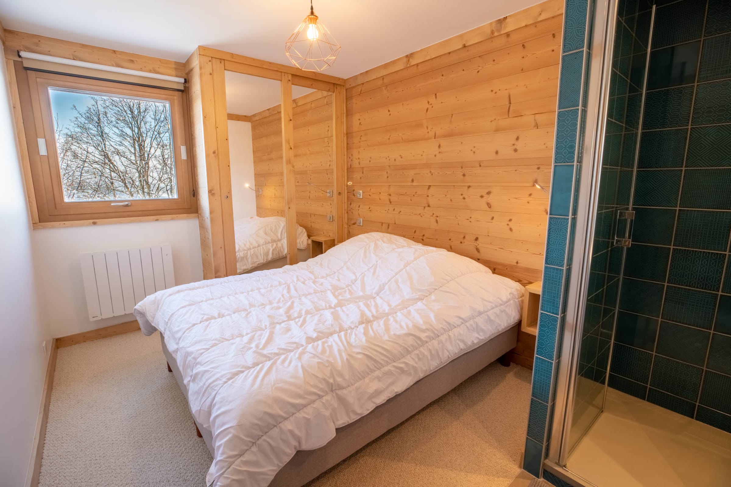 Une chambre double (160x190) ensuite avec douche et lavabo.