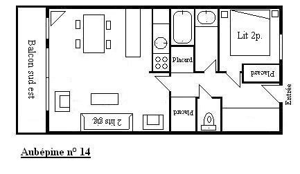 La résidence Aubépine est située à 80m de l'arrêt de bus, à 100m du télésiège de Morel et 250m des commerces. Cet appartement de vacances, situé au 3ème étage, avec ascenseur, se compose d' une cuisine équipée ouverte sur le séjour avec un coin repas et la télévision, 1 ensemble de lits gigognes relevables (80x190) et un balcon exposé Sud vous offrant une jolie vue sur la Vallée de Méribel. Il comprend aussi 1 chambre 1 lit 2 personnes (140X190) exposé Nord, 1 salle de bain et un wc indépendant.