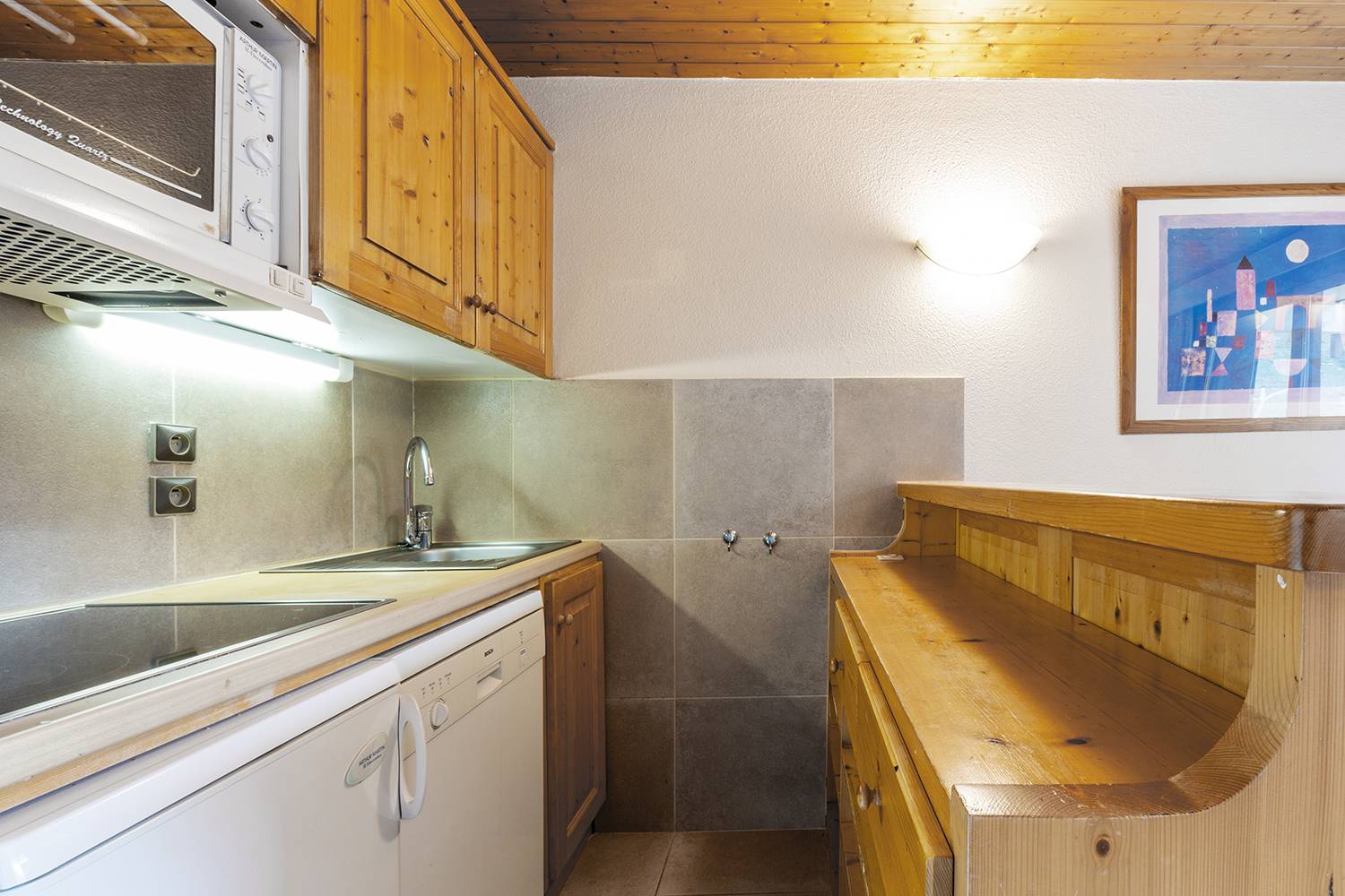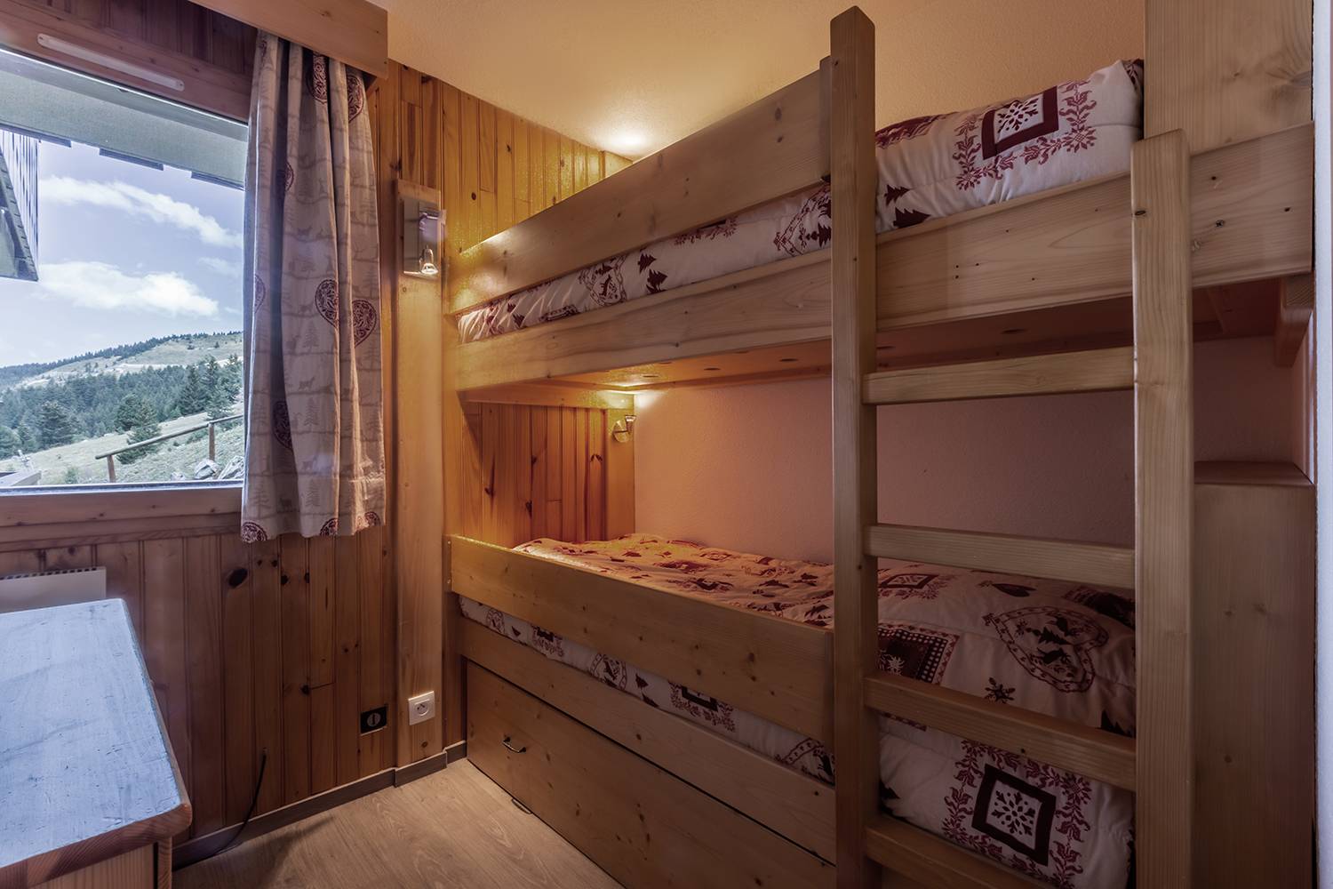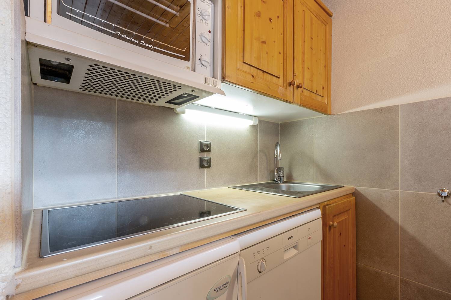 Le séjour se compose d'une banquette lit et d'un lit gigogne (80x190), la télévision et un lecteur DVD. Chambre cabine avec un ensemble de lit superposés (80x190). La kitchenette est équipée de plaques vitrocéramique, four, micro-ondes, lave-vaisselle, réfrigérateur, cafetière et hotte aspirante. Salle de bains et WC séparés. Accès WIFI. Balcon, casier à ski et ascenseur dans la résidence. Animaux non admis. Appartement non fumeur. Etage -2