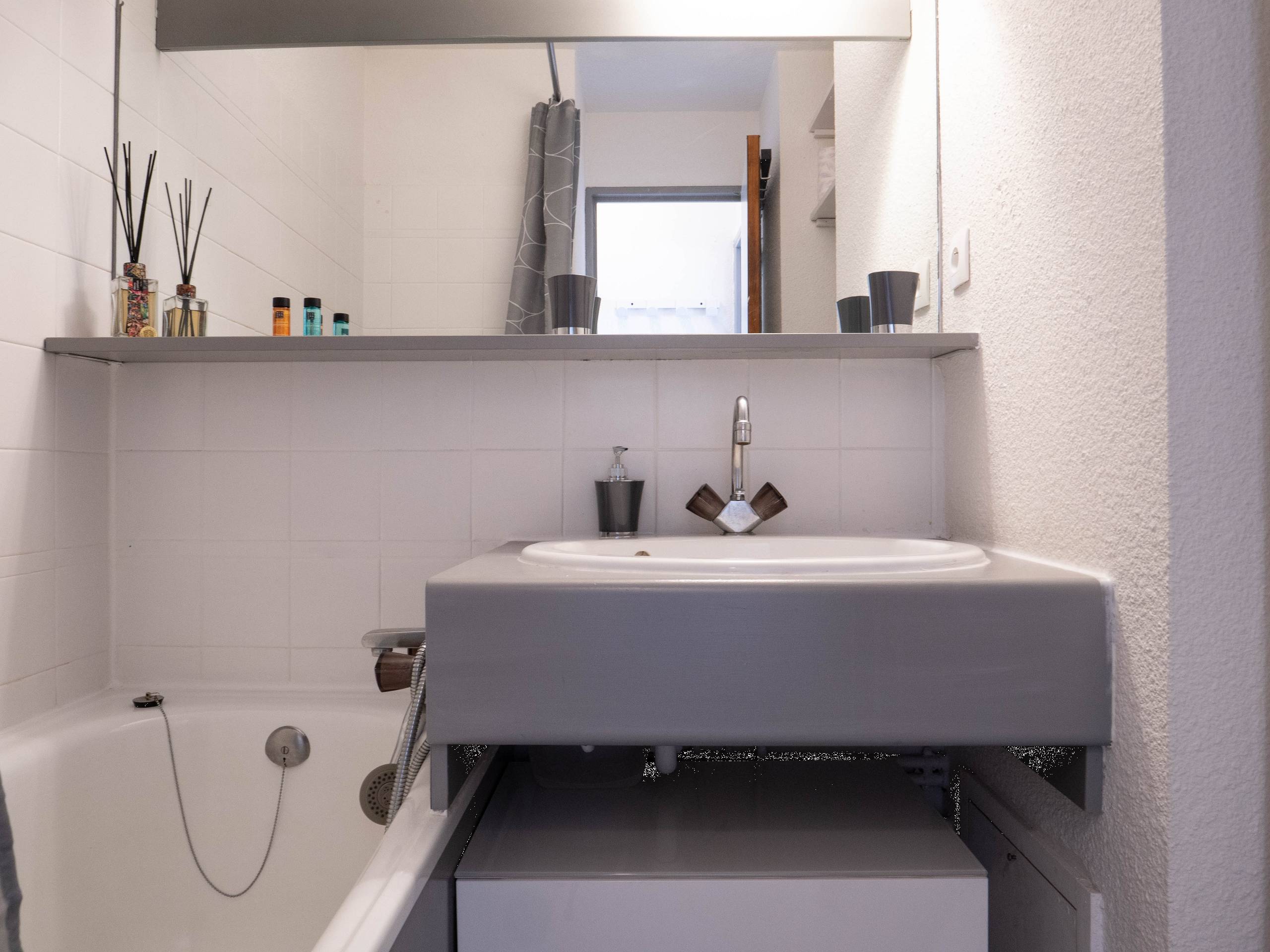 Le séjour avec balcon contient un canapé convertible RAPIDO (140x190) et la télévision. Coin montagne avec lit double (140x190). Kitchenette équipée de plaques vitrocéramiques, four mixte, lave vaisselle, bouilloire, grille-pain, cafetière NESPRESSO et réfrigérateur. Salle de bains avec wc. Balcon exposé Ouest. Casier à skis et ascenseur dans la résidence. Animaux non admis. Appartement non fumeur.