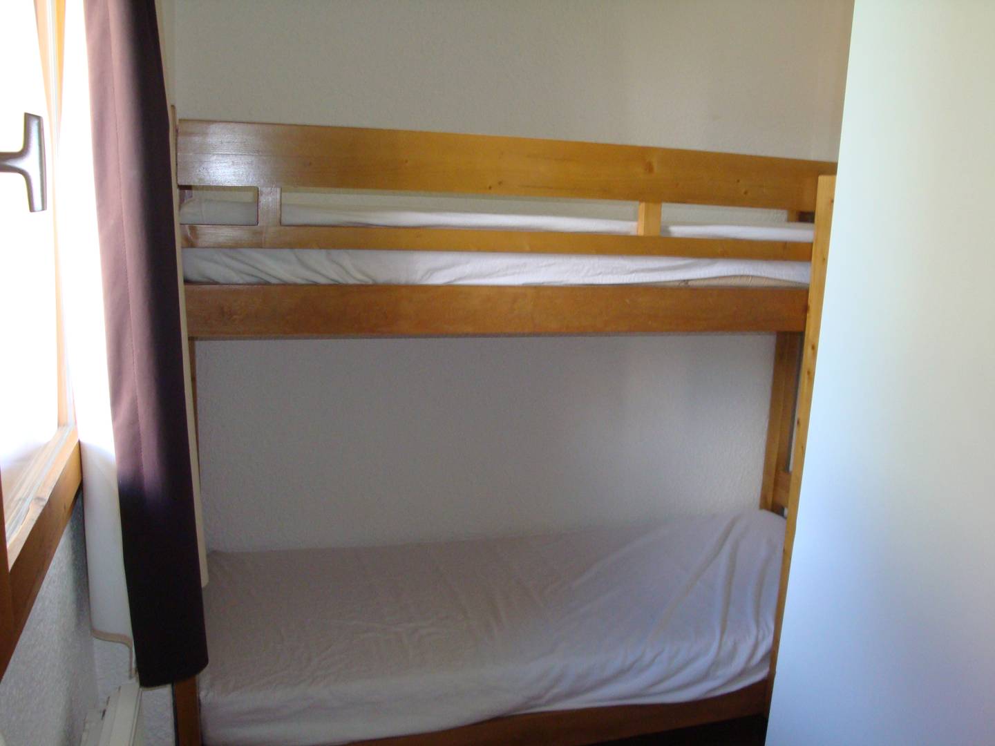 Séjour comprenant deux banquettes lits et un lit gigogne (80x190), une télévision. Cabine avec lits superposés (80x190). Kitchenette équipée de plaques vitrocéramiques, four traditionnel, lave-vaisselle, réfrigérateur, cafetière et bouilloire. Salle de bains avec WC. Balcon. Ascenseur et casier à skis dans la résidence. 3ème étage.