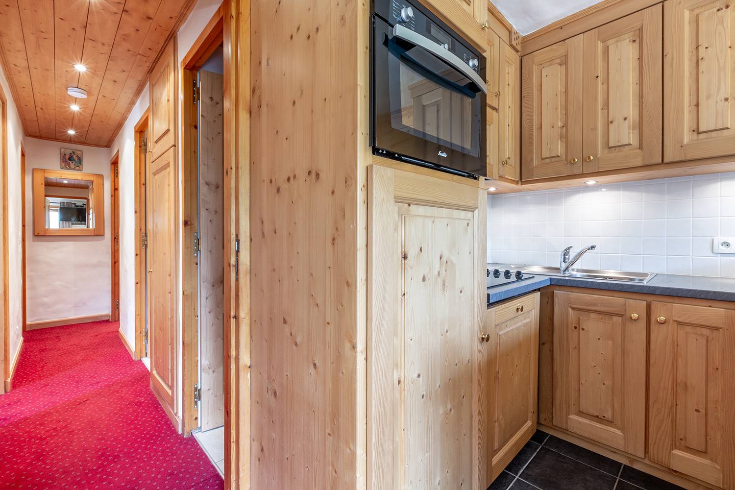 Hall d'entrée avec nombreux rangements, une chambre cabine, avec 2 lits simples en 80 x 190 (dont un en mezzanine/hauteur). Une chambre avec 2 lits simples en