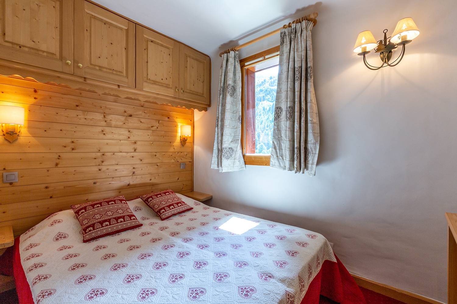 La première chambre est équipée de deux lits simples rapprochés pour plus de confort. La seconde chambre est une chambre-cabine équipe de deux couchages simples dont un en mezzanine. Le séjour dispose de deux banquettes lits pour accueillir deux personnes supplémentaires. Il est situé en étage élevé et malheureusement, il n'y a pas d'ascenseur. Casier à skis dans la résidence. 2ème étage de la résidence. Appartement non fumeur / Animaux non admis.