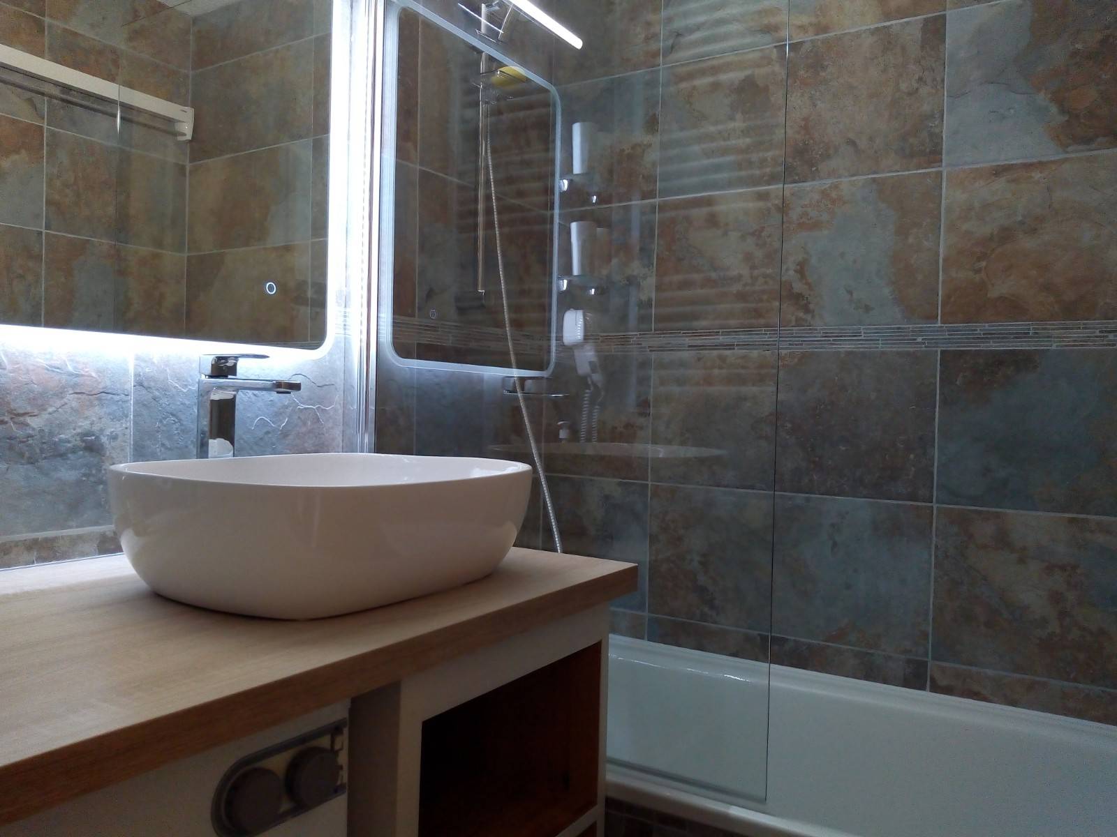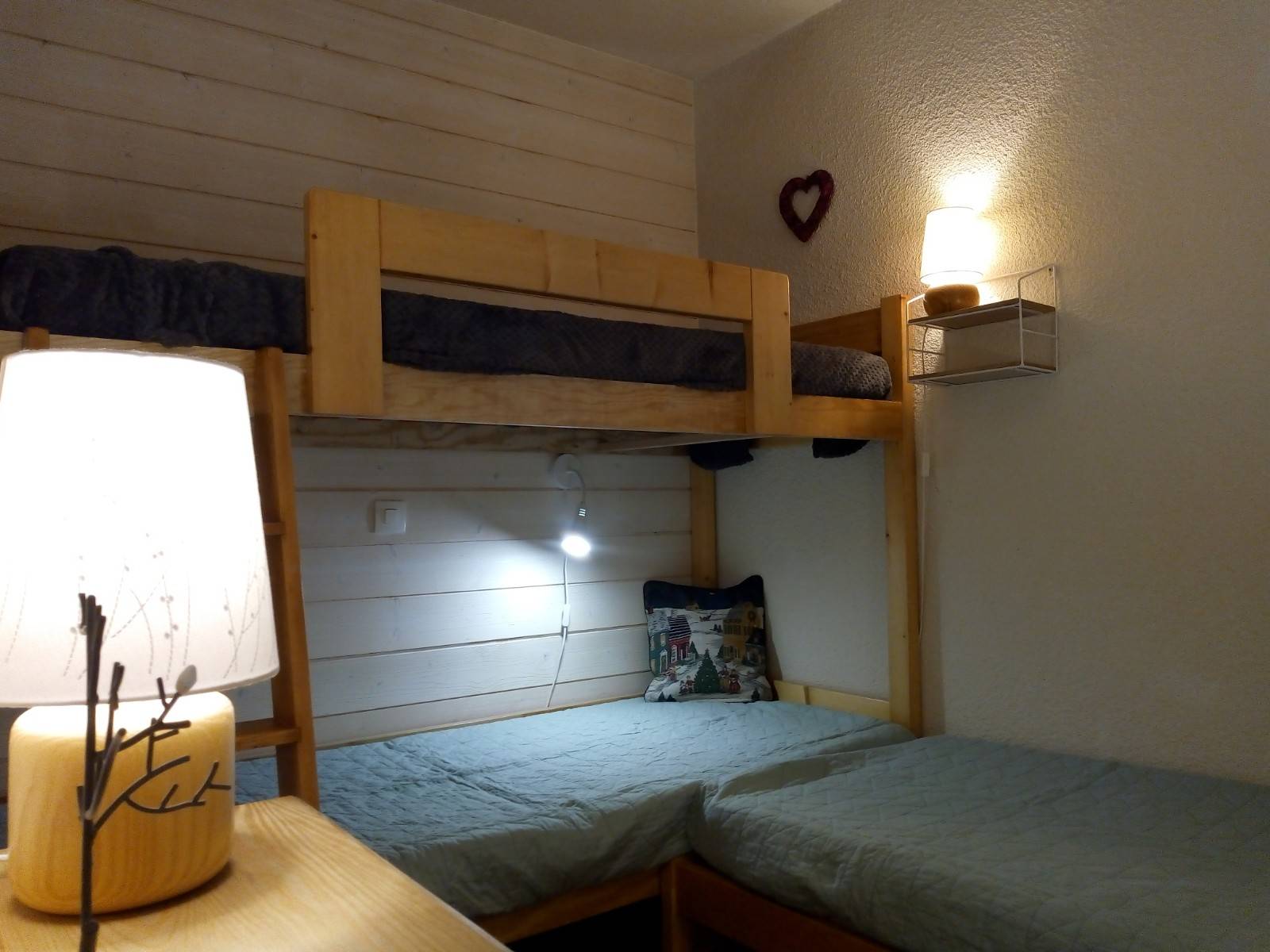Séjour avec 2 banquettes lits (80x190) et télévision. Chambre contenant un lit simple, un lit gigogne et un lit mezzanine (80x190). Cuisine américaine équipée de plaques électriques, lave vaisselle, four, micro ondes et réfrigérateur. Salle de bains avec lave-linge et wc séparés. Balcon. Casier à skis et ascenseur dans la résidence. Accès WIFI résidence. Appartement non fumeur / Animaux non admis