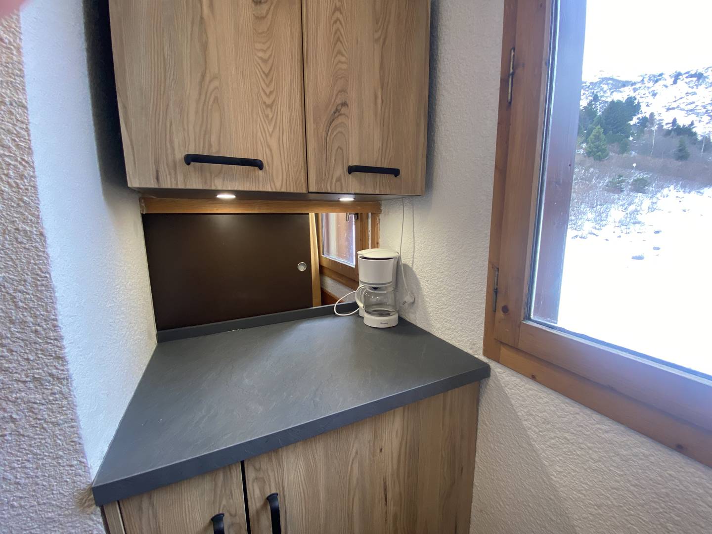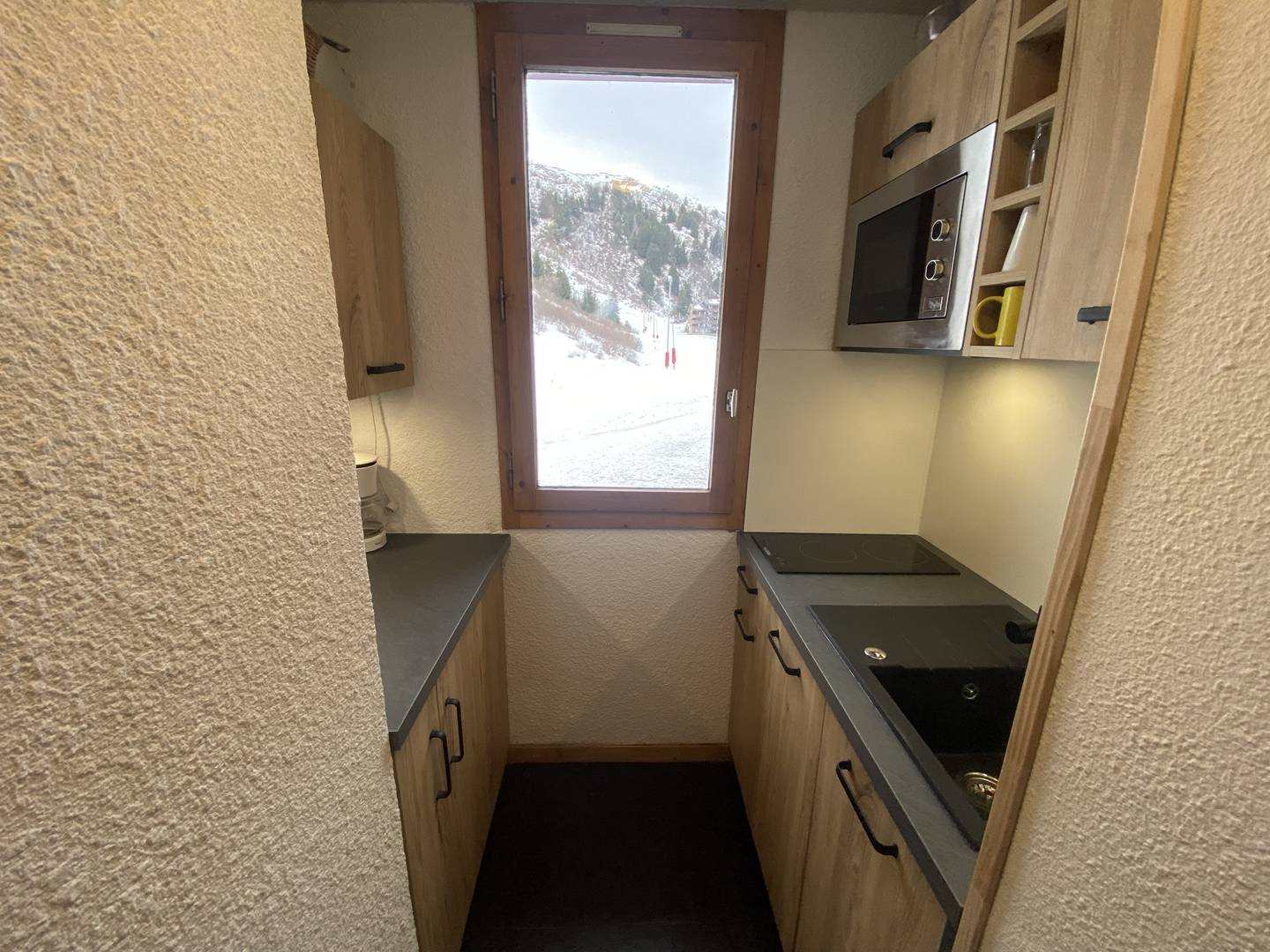 Séjour divisible avec 2 banquettes lits (80x190), un lit gigogne (80x190) et la télévision. Chambre avec un lit double (140x190). La cuisine refaite en 2024 séparée est équipée de plaques électriques, lave vaisselle, four, réfrigérateur, bouilloire, grille-pain et cafetière. Salle de bains refaite en 2024 et wc avec lavabo séparés. Balcon. Casier à ski dans la résidence. Ascenseur. Appartement non-fumeur. 4ème étage.