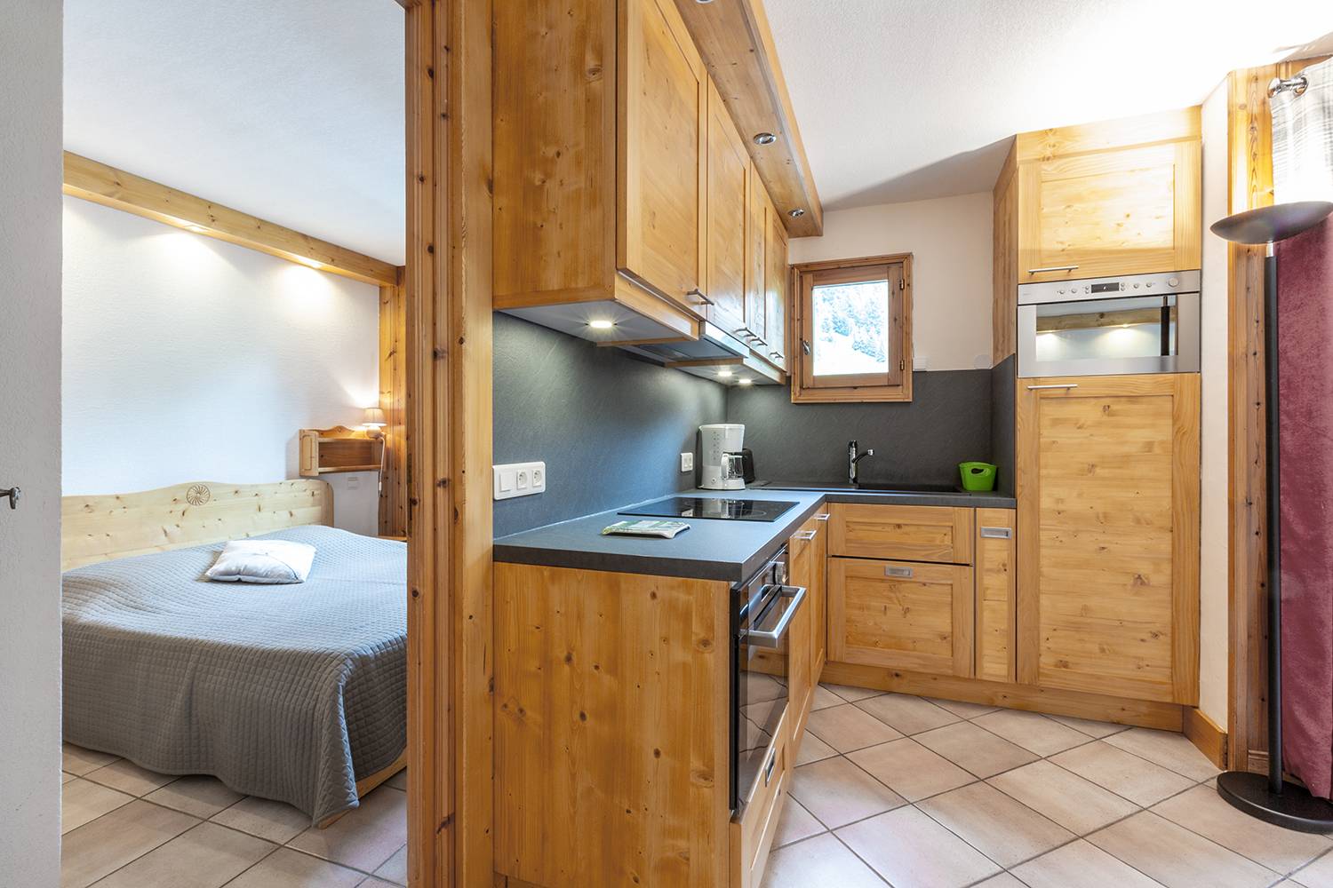 Le chatelet est un quartier résidentiel et récent de Méribel Mottaret, Afin de faciliter votre séjour, il est conseillé de réserver un emplacement de stationnement pour la semaine. Résidence Les Alpages D - Le Chatelet - Appartement récent, offrant une ambiance chaleureuse et conviviale. Séjour et chambre principale avec balcons.