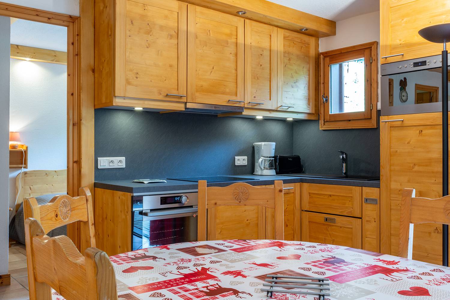 Une autre chambre avec 1 lit double (160x190) également. Chambre cabine avec 3 couchages superposés( 80x190). Cuisine équipée de plaques vitrocéramique, four, cafetière type senseo, lave vaisselle et réfrigérateur. 1 autre salle de bains et un WC séparé. Casier à skis dans la résidence. Appartement non fumeur, animaux non admis.