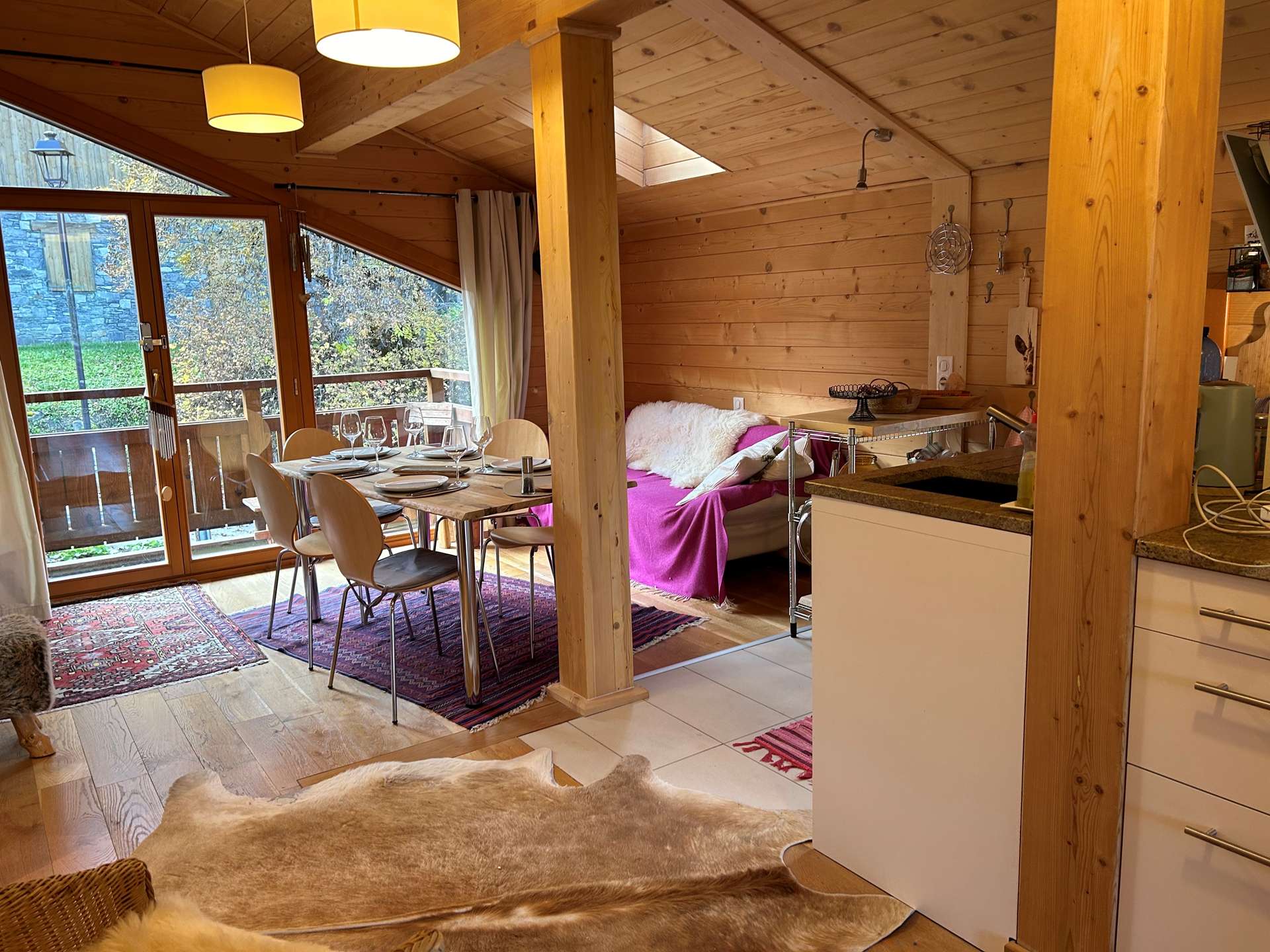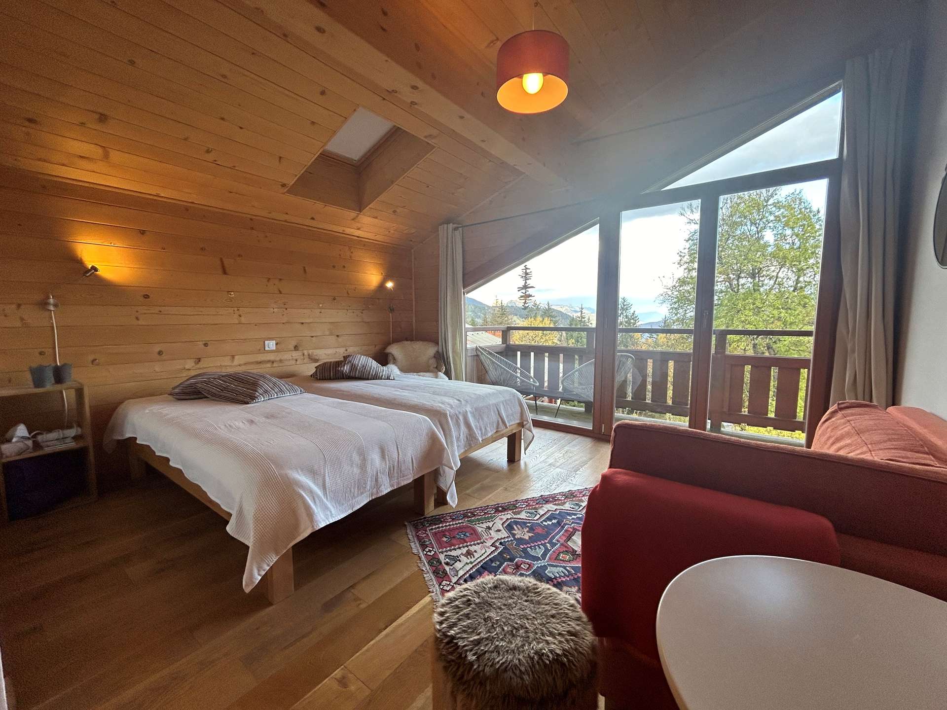 Ce charmant chalet MAGIC ROCK comprend 2 appartements et nous vous proposons celui du 1er étage en 4 pièces. Il dispose d'une cuisine équipée ouverte sur le séjour avec son coin repas, son salon et la télévision, de 3 chambres avec chacune une salle d'eau avec toilettes et 2 lits simples en 90x200 pouvant se rapprocher. Elles sont très lumineuses et spacieuses et donnent toutes sur un balcon. Dans le séjour, à votre disposition un lave-linge et sèche linge ainsi qu'un petit local pour ranger les chaussures de ski et quelques paires de skis. Ce chalet est située dans le quartier du Plantin à moins de 2km des commerces et restaurants de la station de ski de Méribel Village et 4 km de la station de Méribel. Un lieu apaisant avec une vue magique depuis les chambres exposées Ouest !