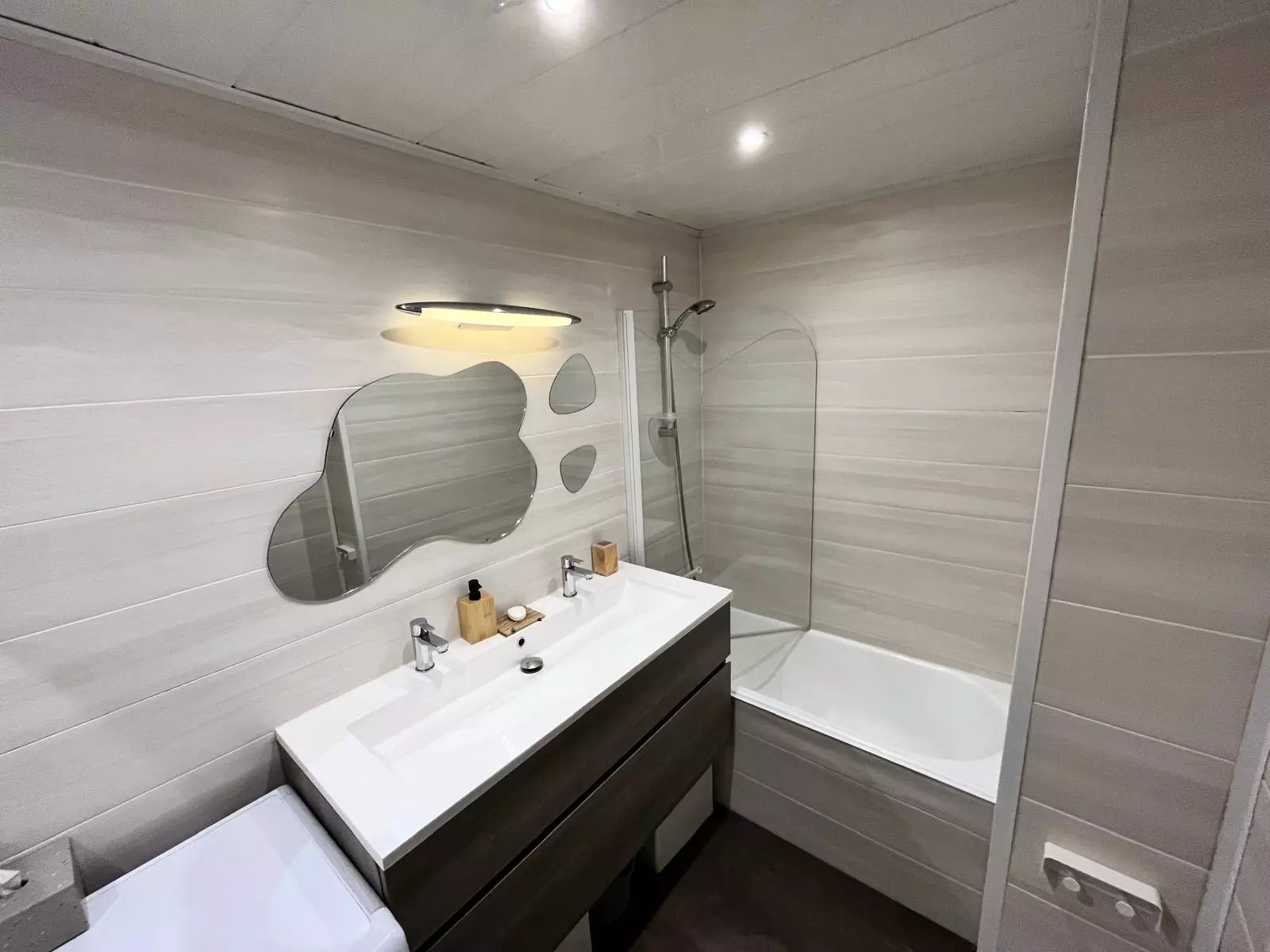 Cuisine équipée : plaque vitrocéramique, hotte, four traditionnel, micro-ondes, lave-vaisselle, bouilloire et cafetière Nespresso