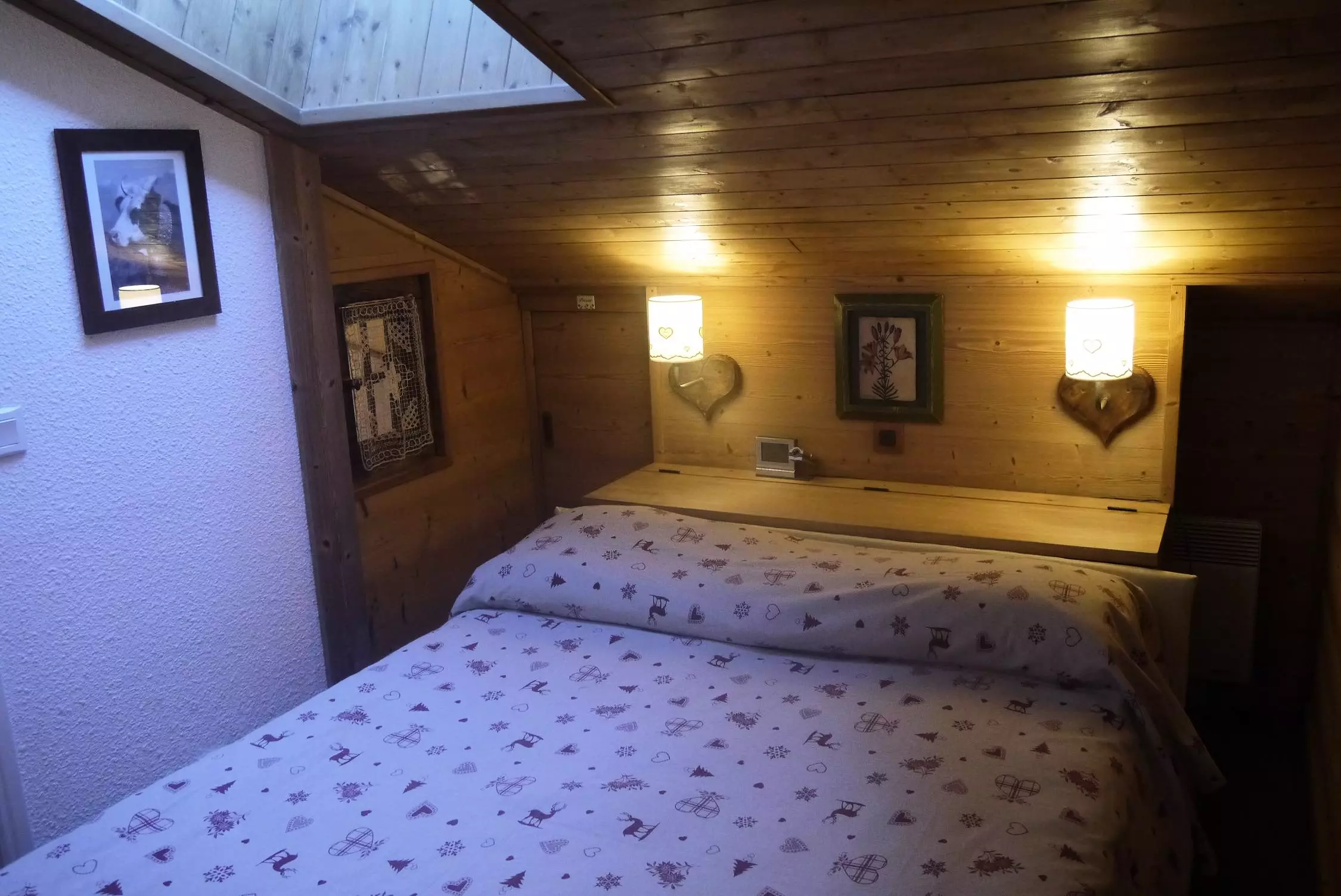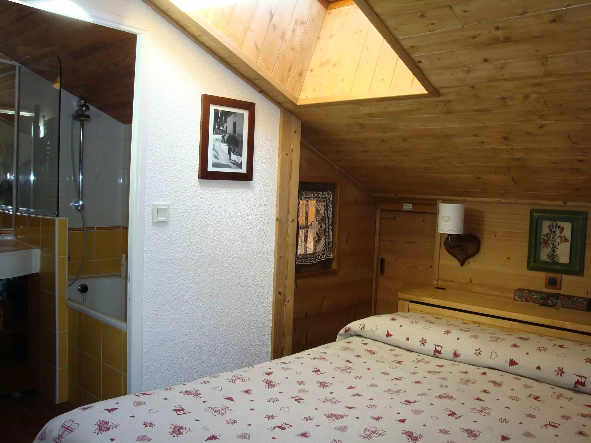 Niveau +1: Chambre mansardée avec un lit double (140x190), salle de bains en suite.