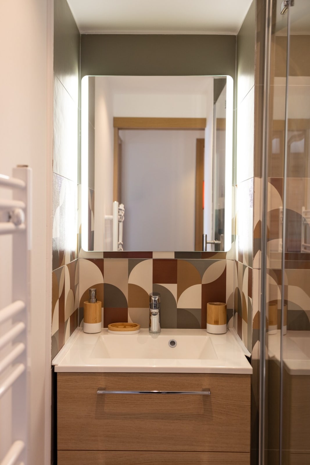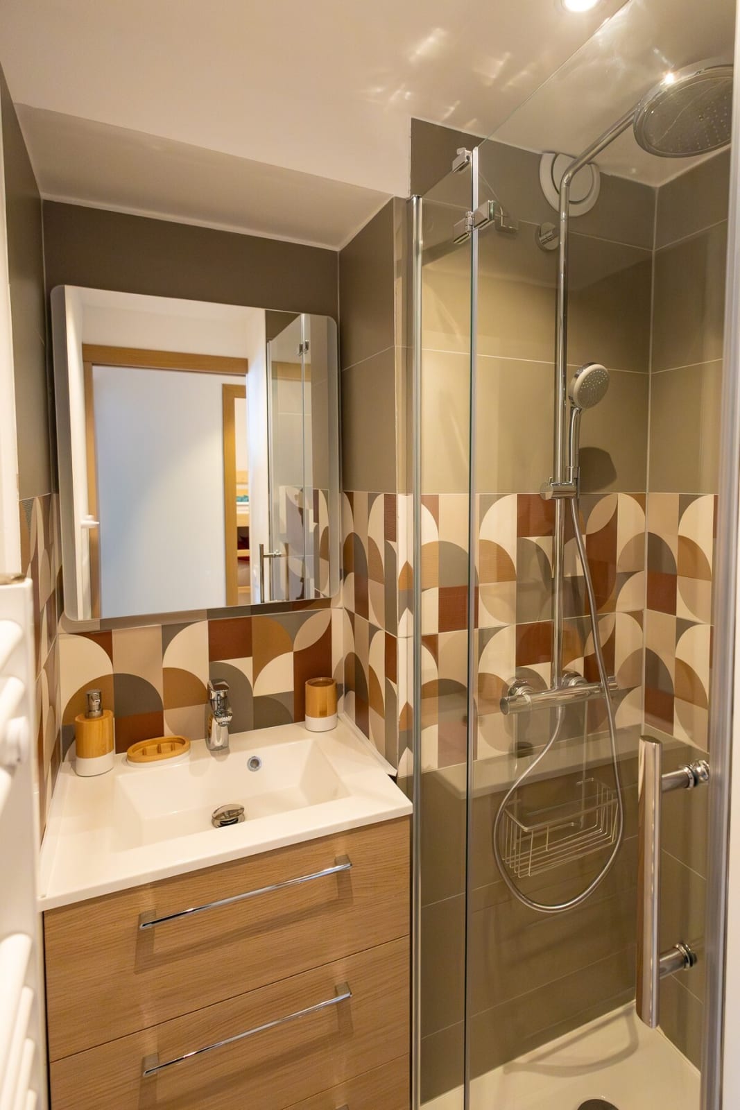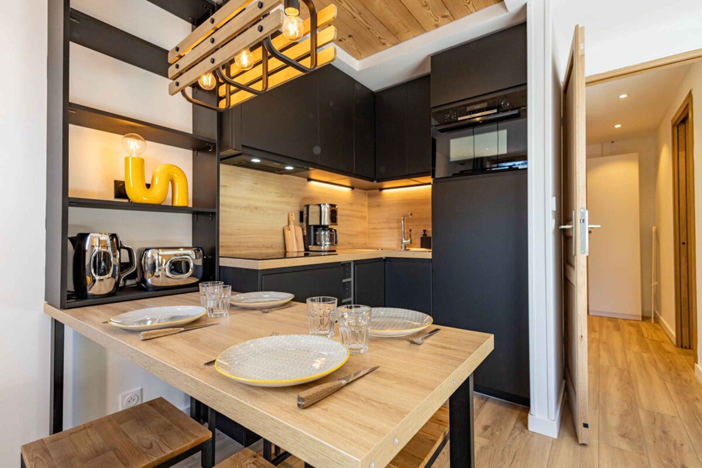 Ce cosy appartement de 28m² est parfait pour un séjour à la montagne, offrant un cadre chic et chaleureux. Il peut accueillir jusqu’à 5 personnes, avec une chambre équipée de deux lits superposés (adaptés aux adultes) et un lit gigogne, ainsi qu’un salon avec un canapé convertible confortable. Vous apprécierez également le balcon avec une vue imprenable sur les pistes et les montagnes environnantes. La salle de bain moderne et les équipements neufs garantiront votre confort. Un casier à ski est à votre disposition pour faciliter vos journées sur les pistes. Cet appartement bénéficie d’un emplacement privilégié au cœur des Trois Vallées.