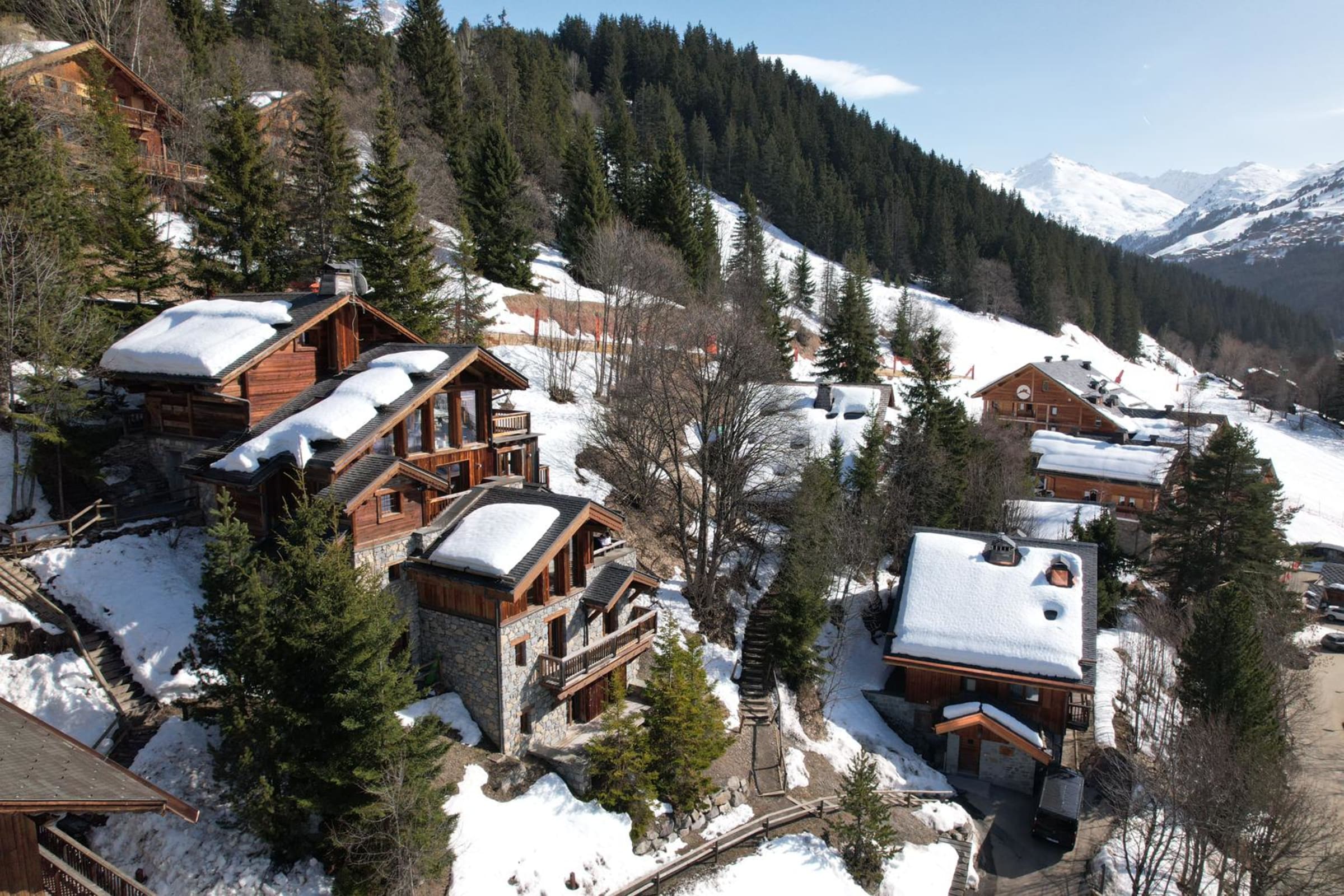 Le chalet se situe dans le quartier très recherché de la Renarde à Méribel, l’un des emplacements les plus prestigieux de la station.