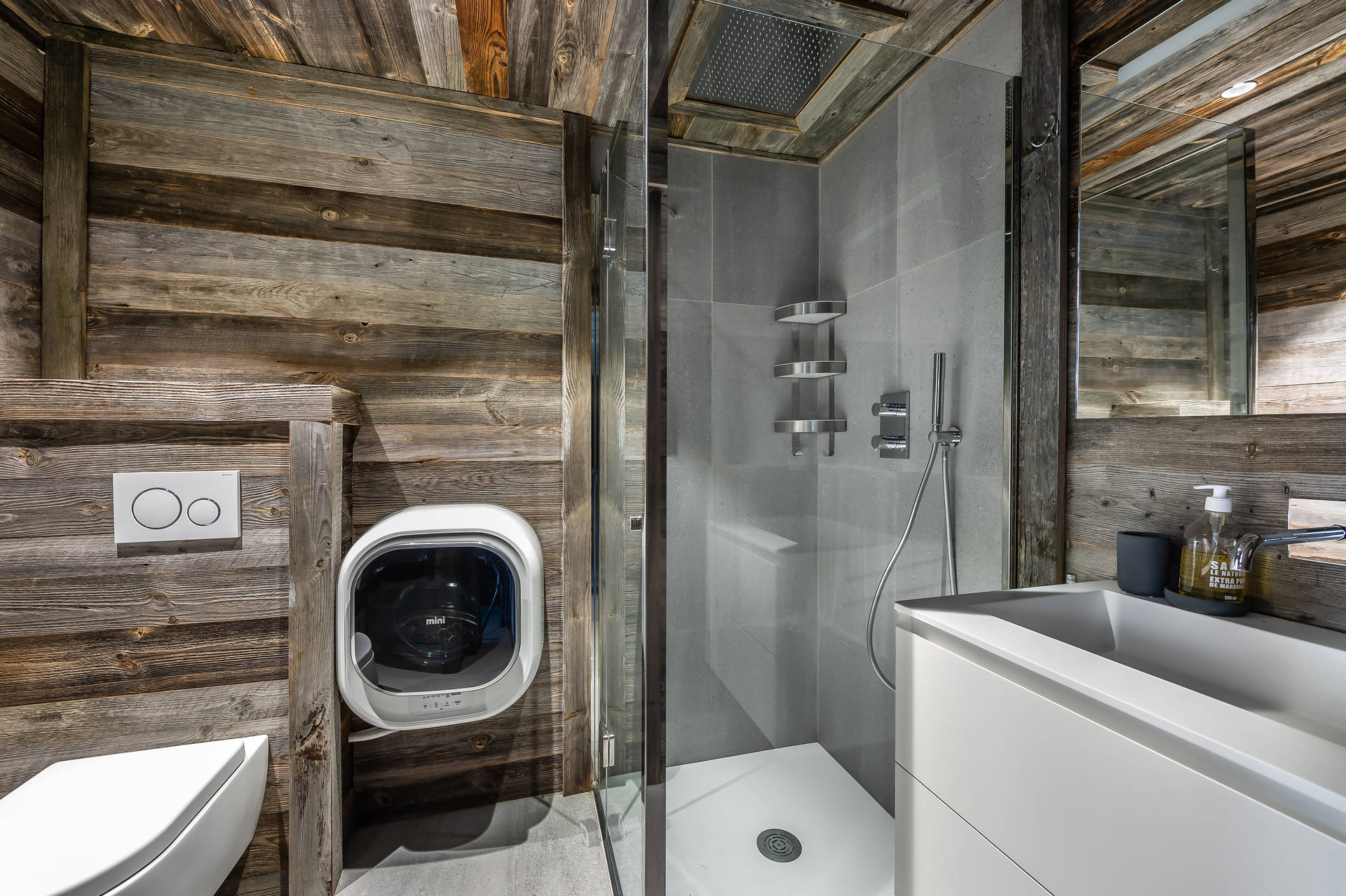 - Salle de douche avec WC et mini lave-linge