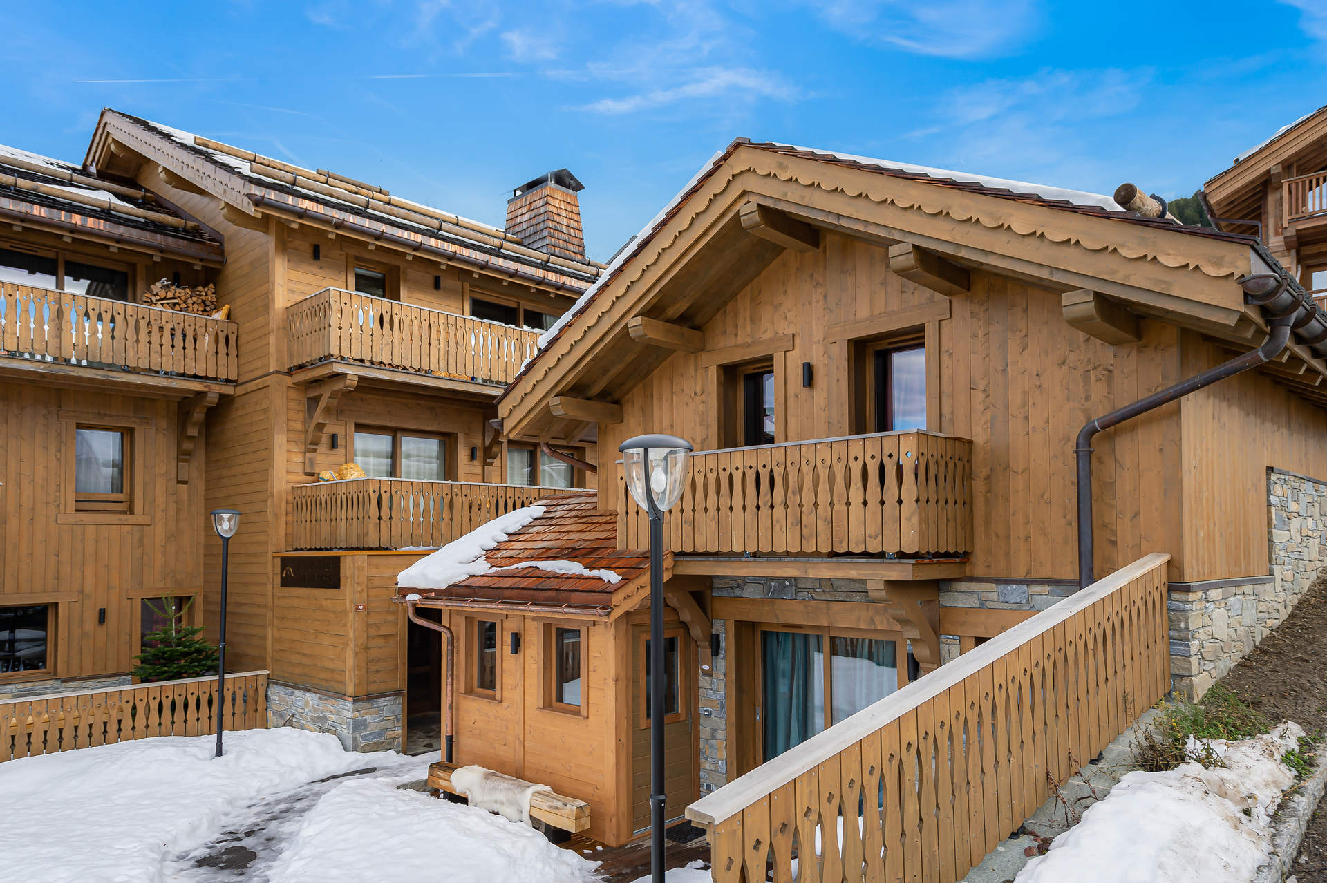 Luxueux chalet de 60m² équipé pour 5 personnes avec 2 chambres, situé à Méribel Village. Exposition ouest.