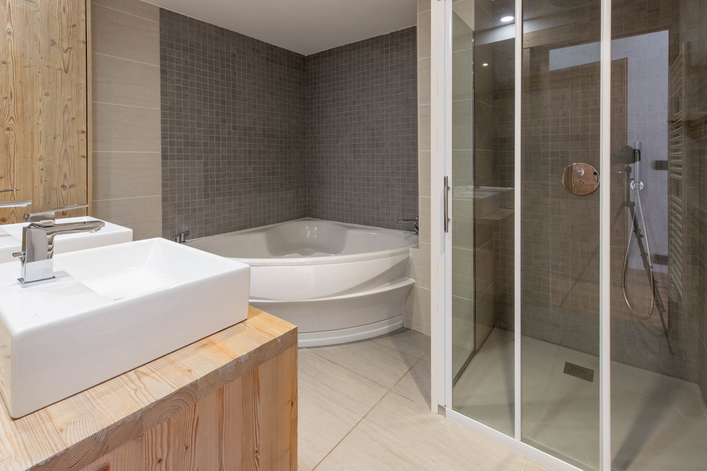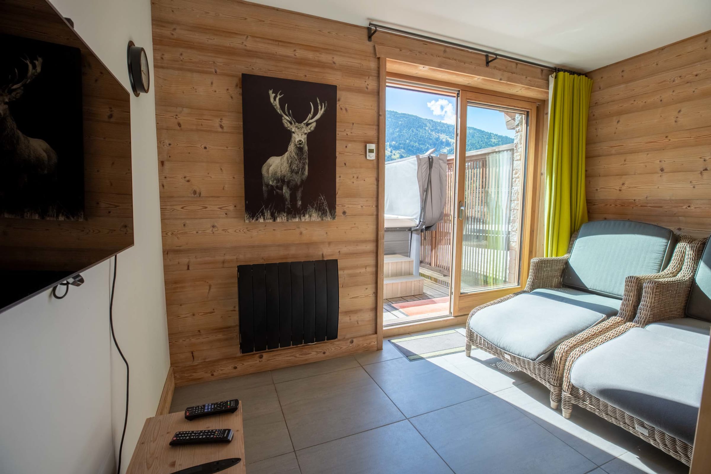 Volumes généreux, une vue dégagée sans aucun vis-à-vis sur la montagne et de très belles prestations. Le jacuzzi extérieur sera fortement apprécié après une journée de ski, tout comme le sauna.
