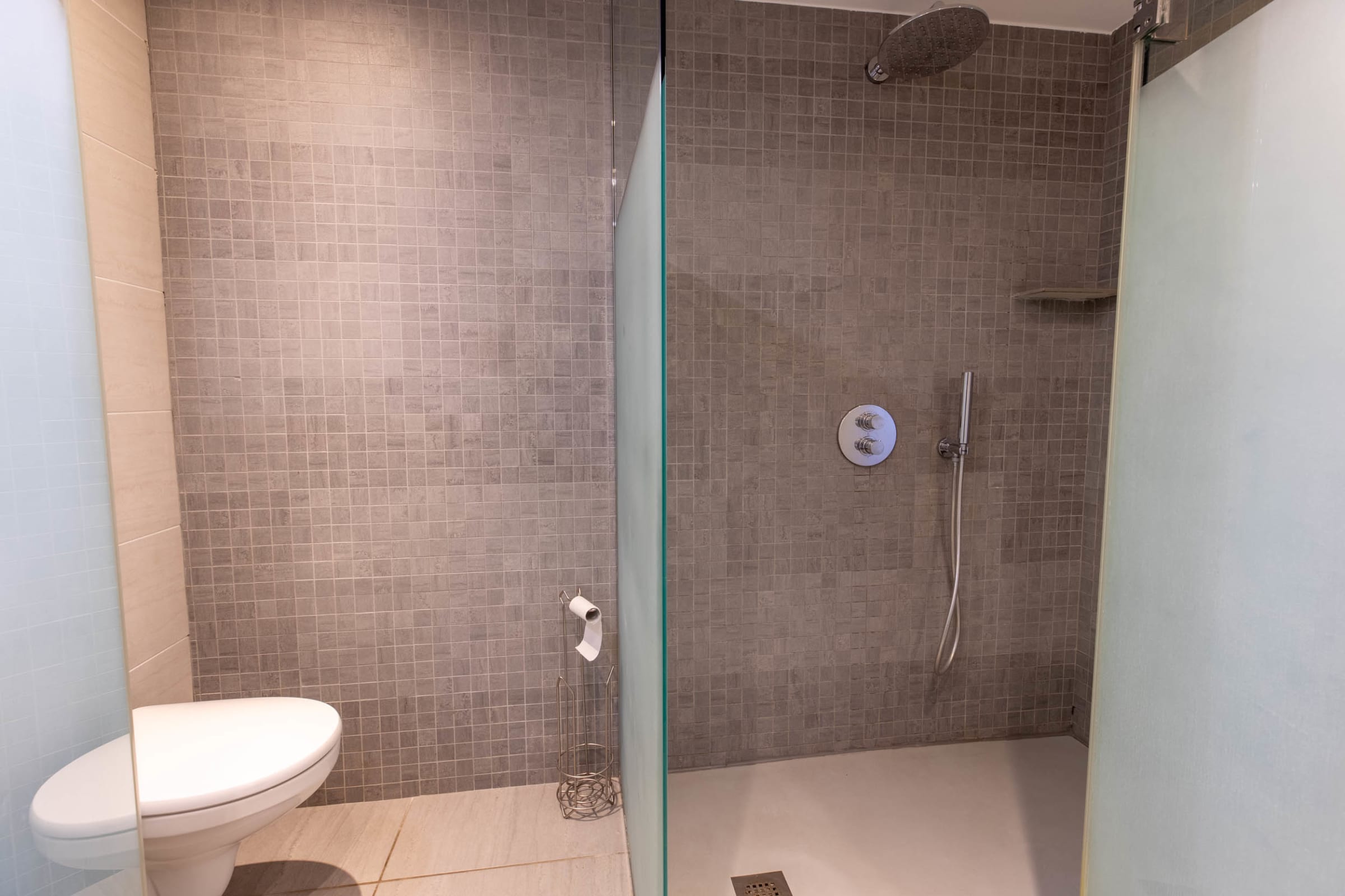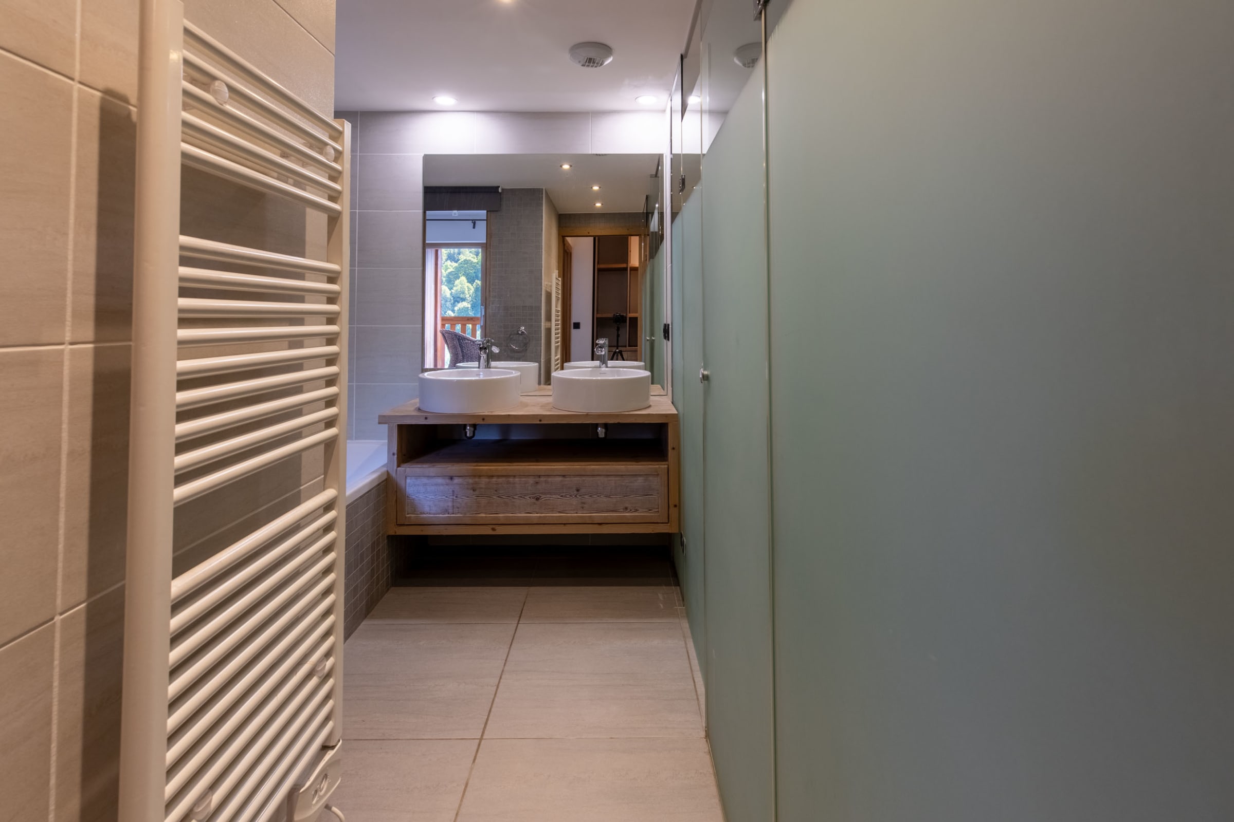 La seconde chambre sur cet étage est équipée d'un lit double (160 cm), d'une salle de bain en-suite avec douche, double vasque et WC. Cette chambre dispose également d'un petit balcon privatif, d'une télévision, et d'un bureau pour travailler.