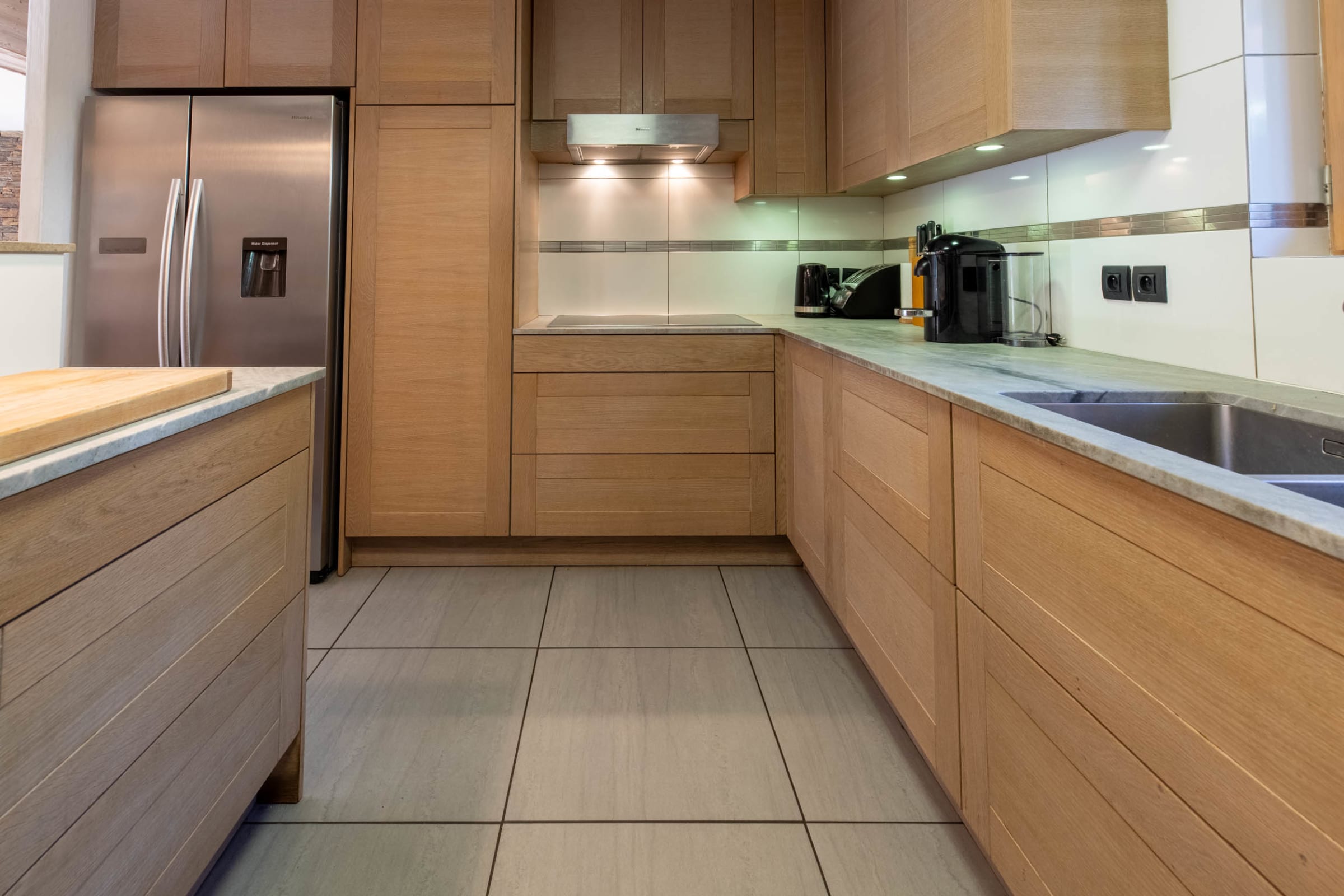 La cuisine moderne est dotée d'une plaque vitrocéramique, d'une machine à café Nespresso, d'un toaster, d'une bouilloire, d'une cave à vin, ainsi que d'un four traditionnel, d'un micro-ondes, et d'un lave-vaisselle. Pour les amateurs de cuisine, des équipements supplémentaires comme une machine à fondue, un slow cooker et un mixeur sont également disponibles.