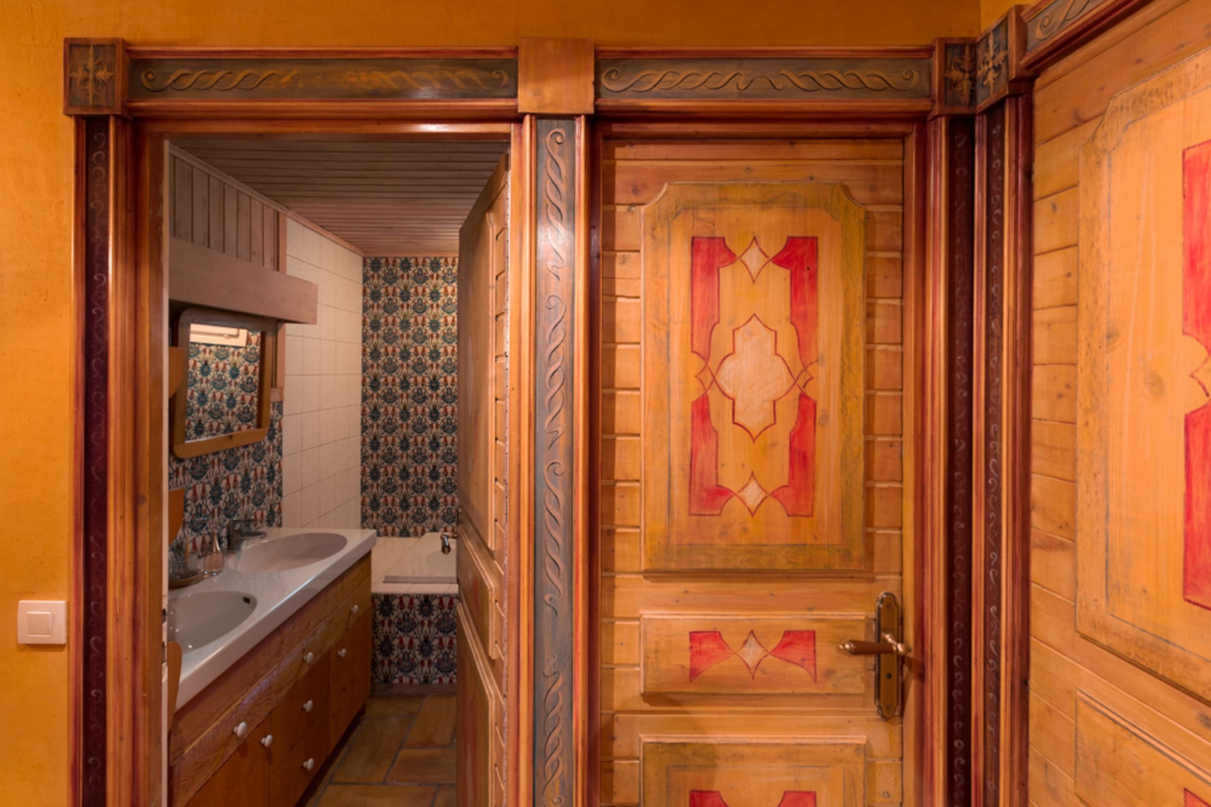 • Entrée principale du chalet par la terrasse, sas d’entrée avec placards.