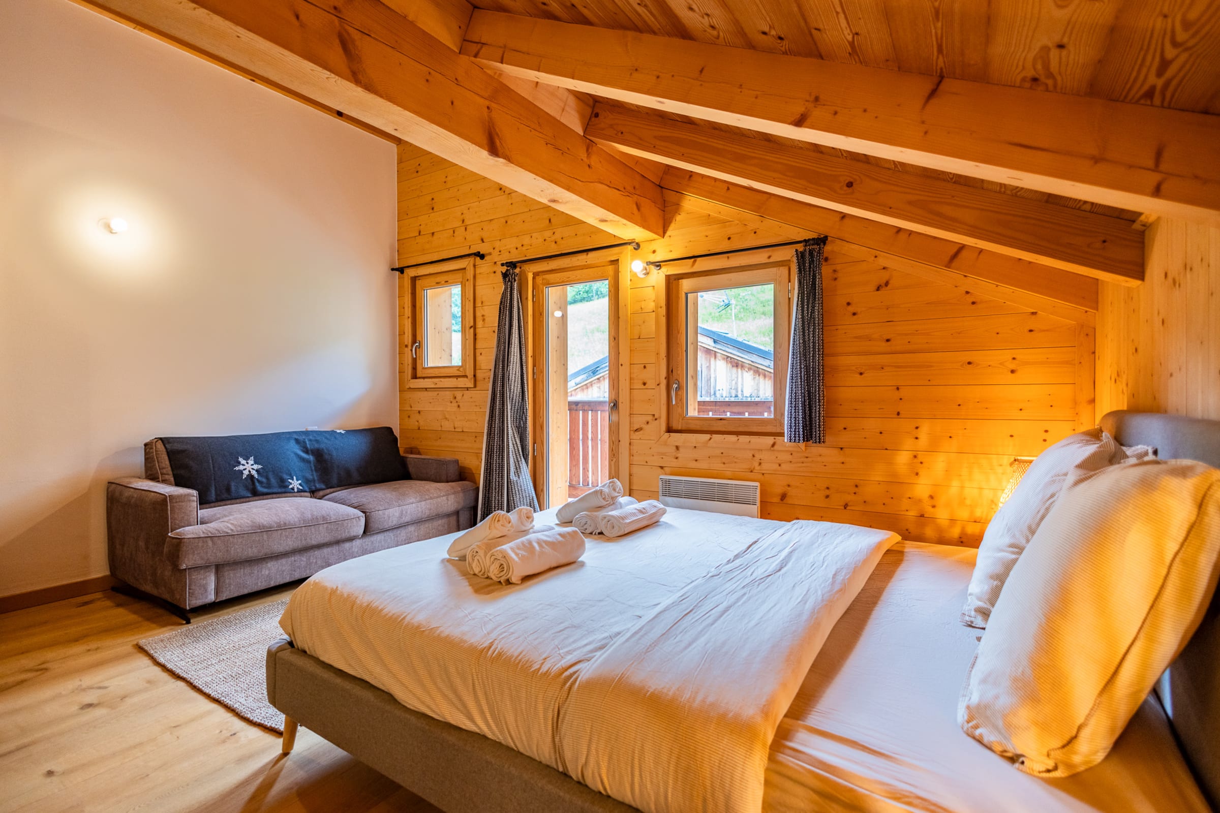 Le retour au chalet est possible à ski, et pour le départ, vous avez le choix entre les navettes gratuites à proximité ou un court trajet en voiture jusqu'aux pistes.